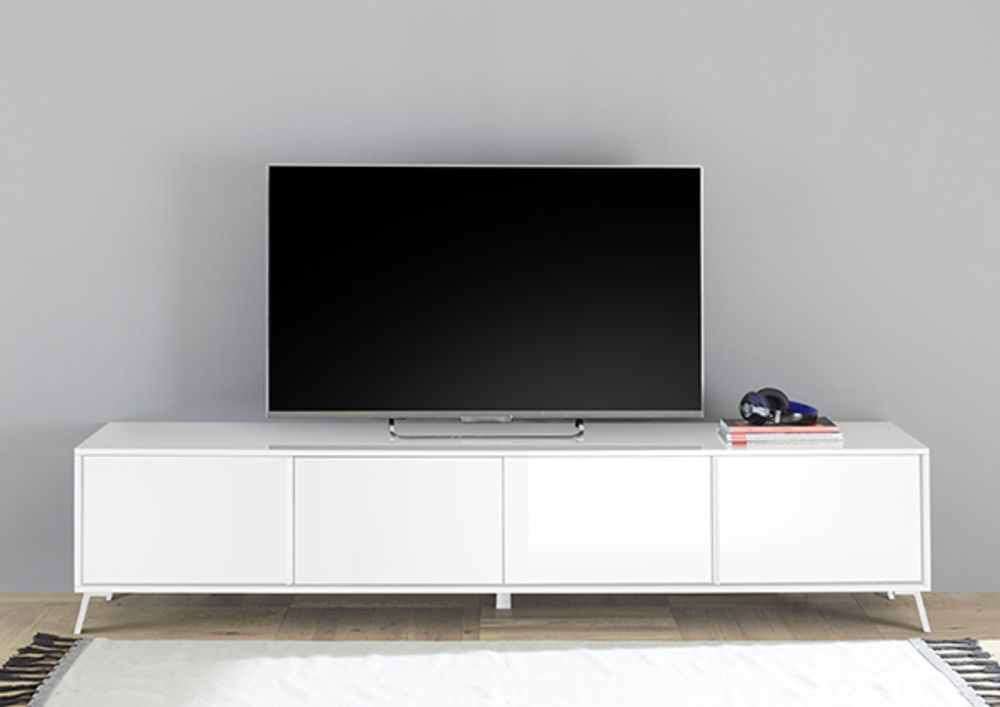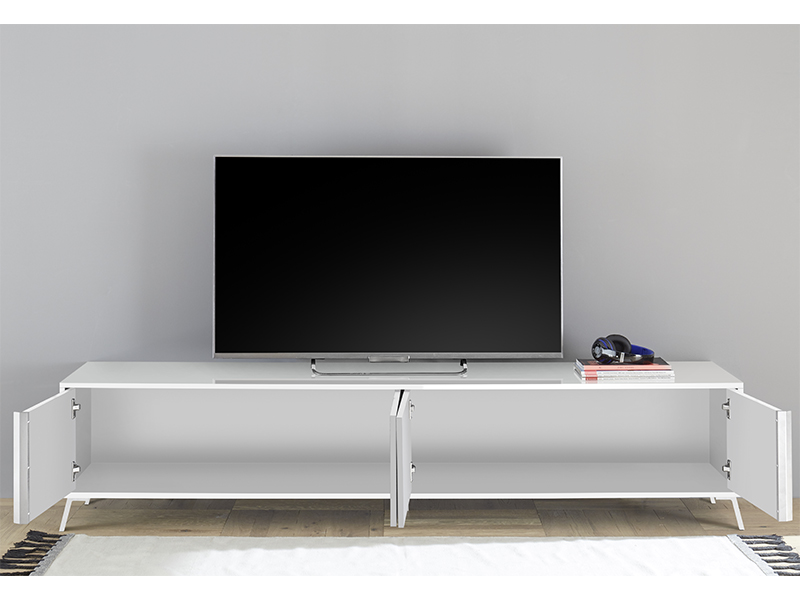 Meuble tv 4 portes Alassio blanc laqué brillant