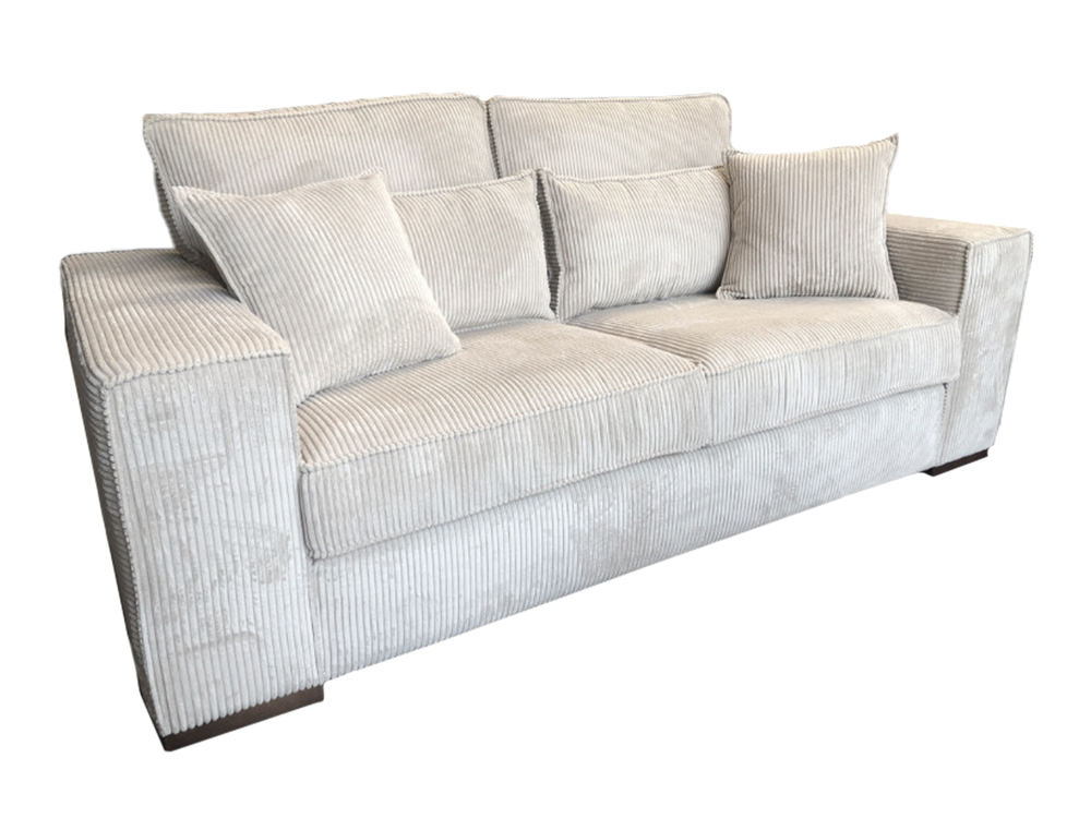 Assises en mousse polyuréthane 32 kg/m3 et ressorts type bonnel, dossier en copeaux de mousses.