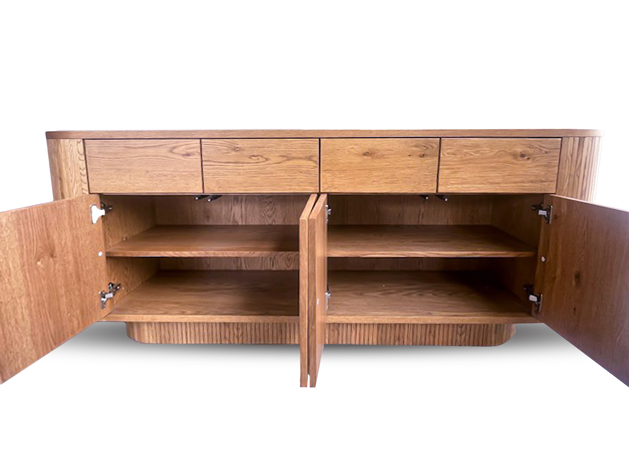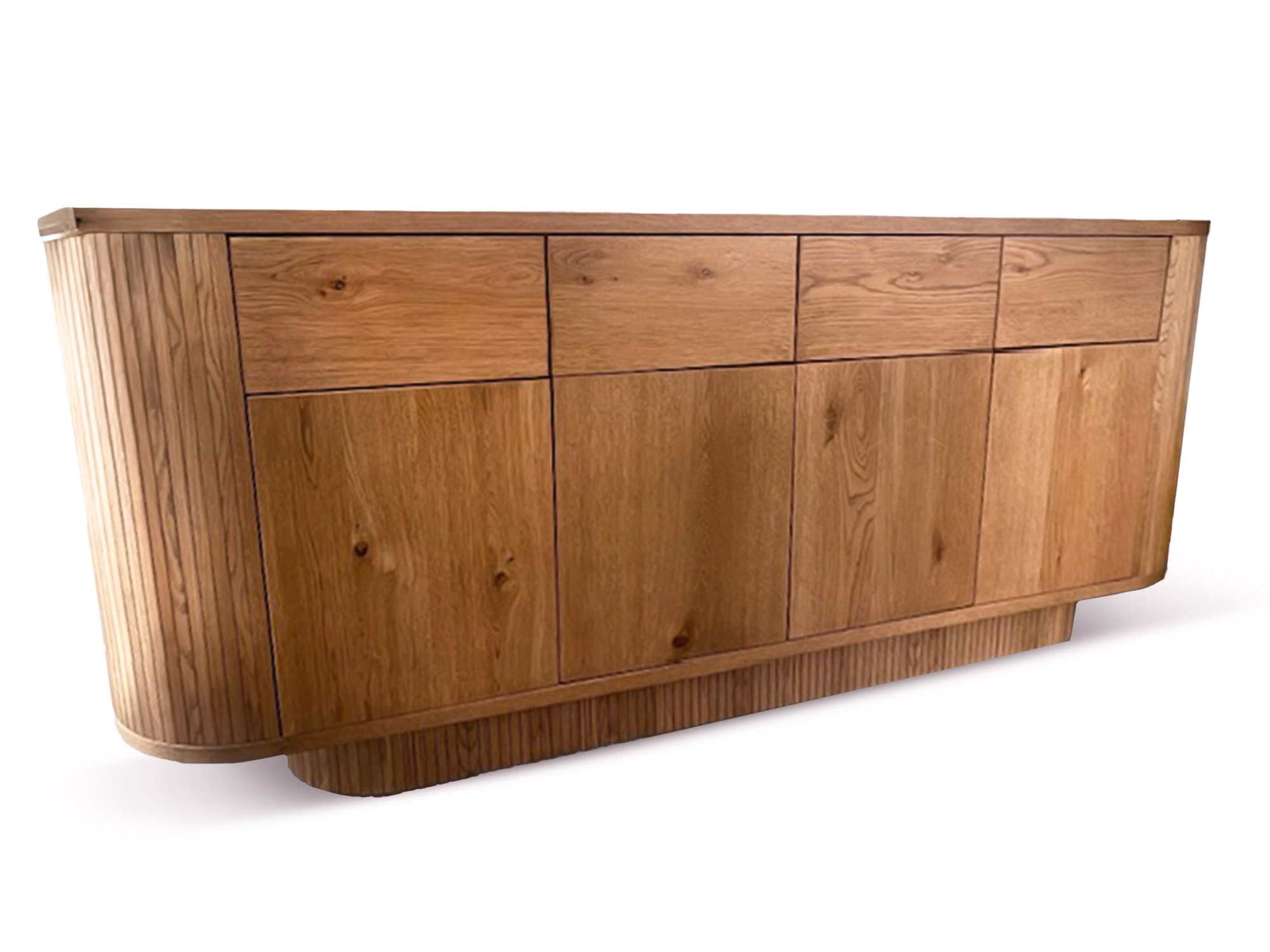 Sa structure en panneaux de particules replaqué chêne garantit solidité et authenticité. Le plateau de 25 mm + 1 mm de replaquage chêne apporte une belle épaisseur et un rendu élégant. Les côtés et façades en panneaux de 18 mm + 1 mm de replaquage chêne renforcent sa durabilité, tandis que les intérieurs de tiroirs en panneaux 15 mm et leur fond en contreplaqué 4 mm assurent une finition soignée et fiable.