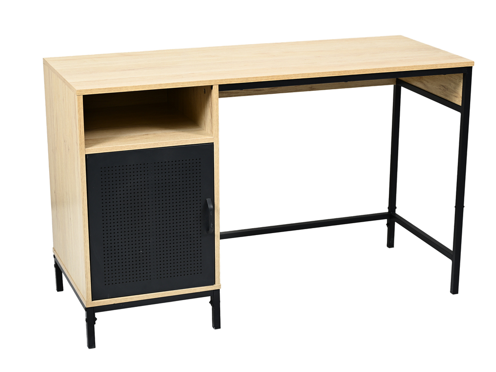 Conçu avec un piètement en métal noir et des panneaux de particules de 15 mm, il présente un revêtement en mélamine couleur bois qui apporte chaleur et style à votre intérieur. En termes de rangements, le bureau contemporain Antonio est équipé d'une porte et d'une niche, offrant des solutions adaptées pour vos fournitures et documents. Son look industriel est parfait pour un bureau à domicile ou un espace de travail contemporain. Facile à assembler, ce meuble provient d'Asie et est accompagné d'une garantie de 2 ans.