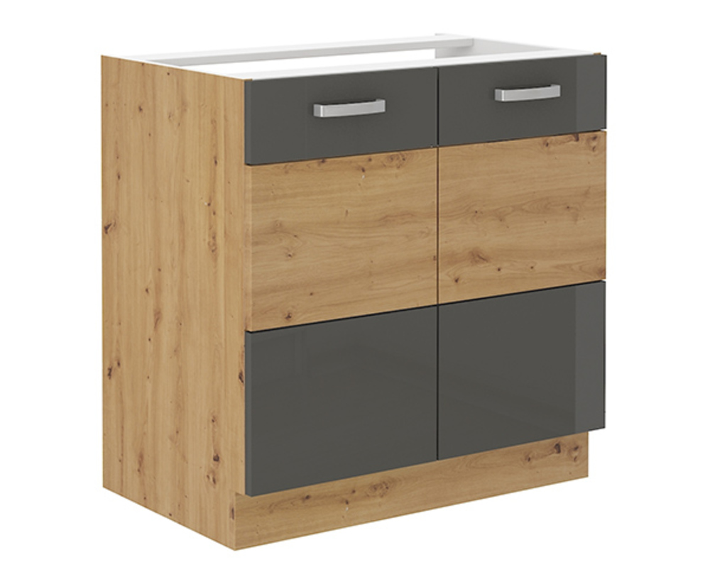 Bas 80 sous-evier 2 portes Artisan gris brillant/chene