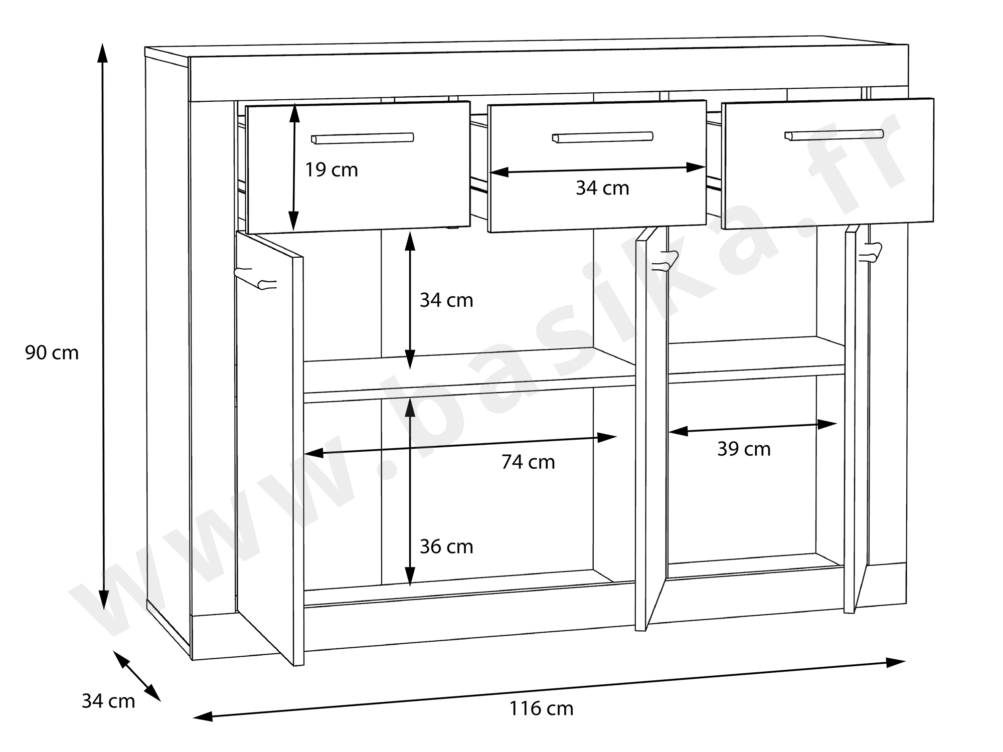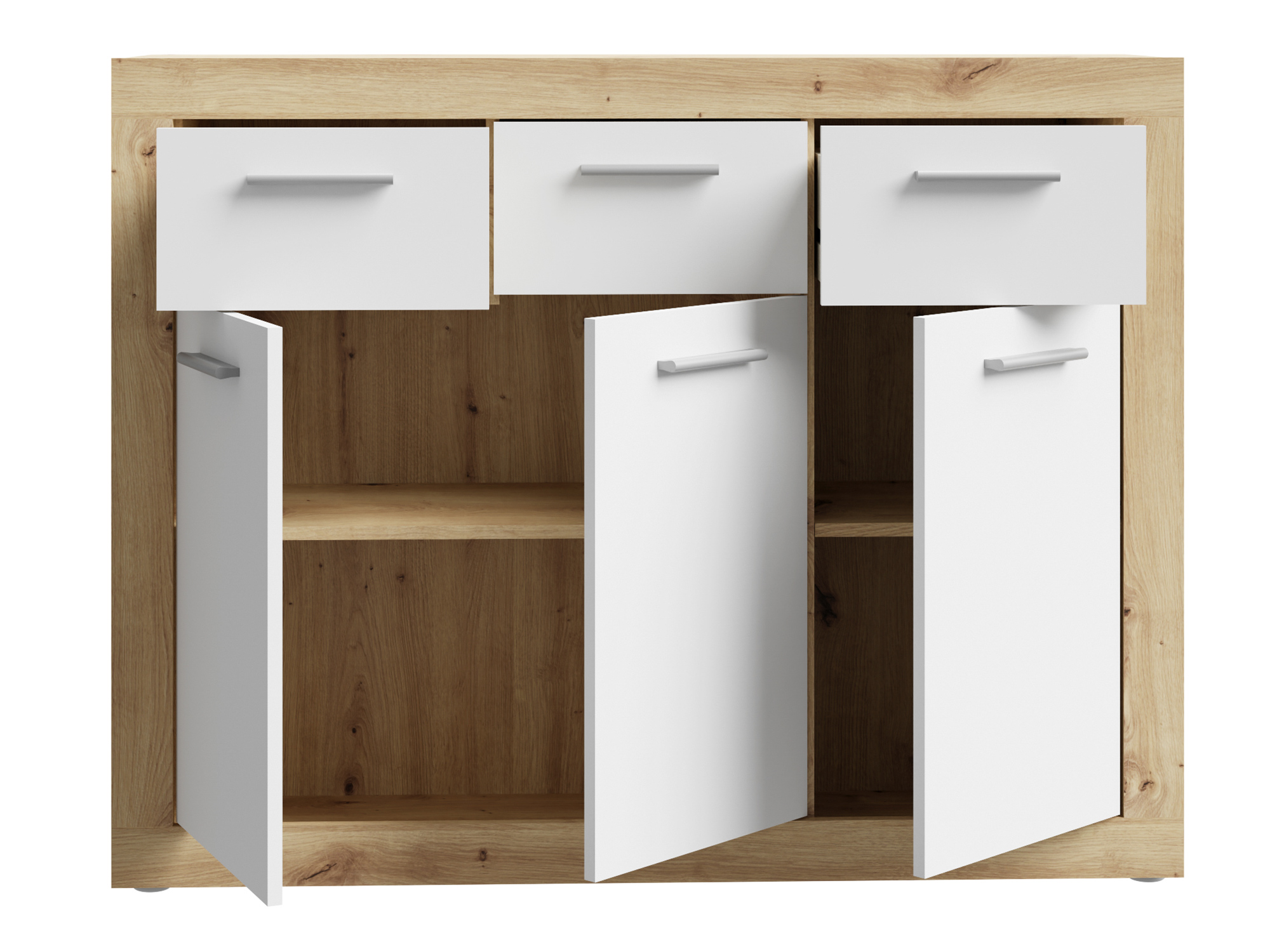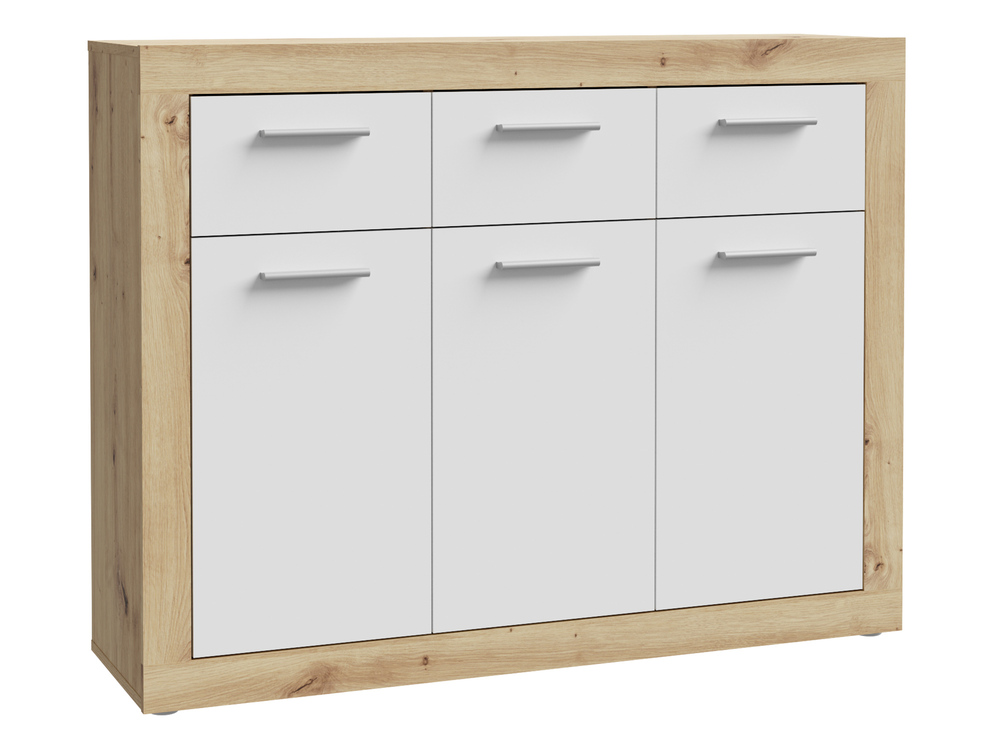 Bahut 3 portes 3 tiroirs Baccio chene artisan / blanc mat