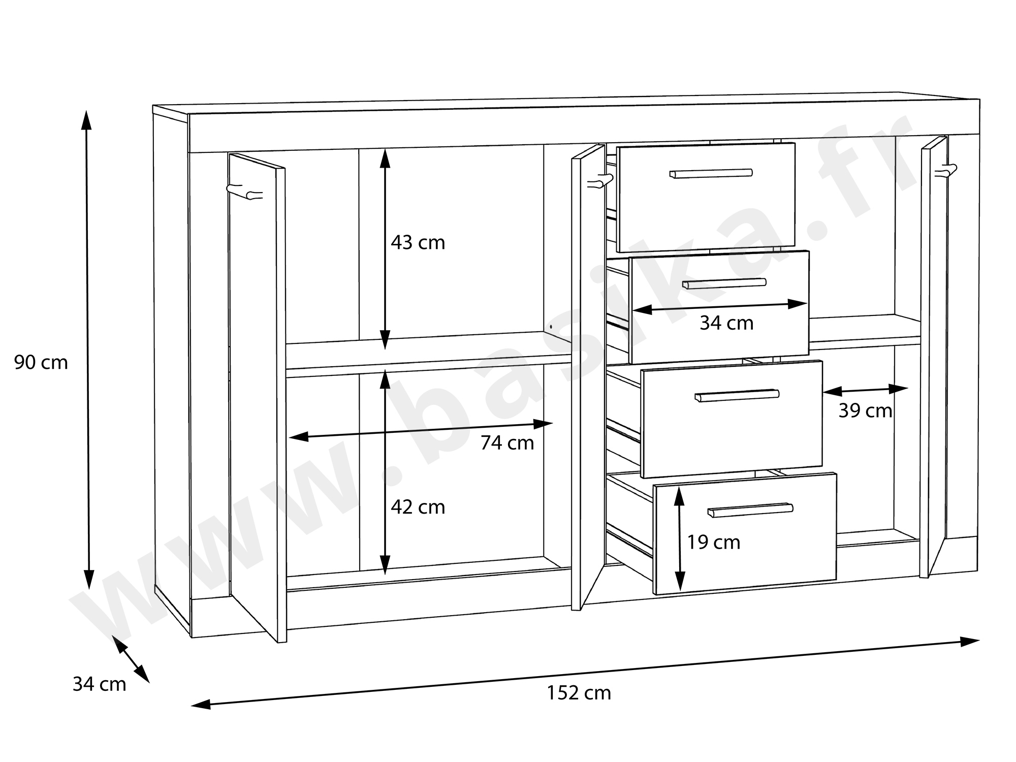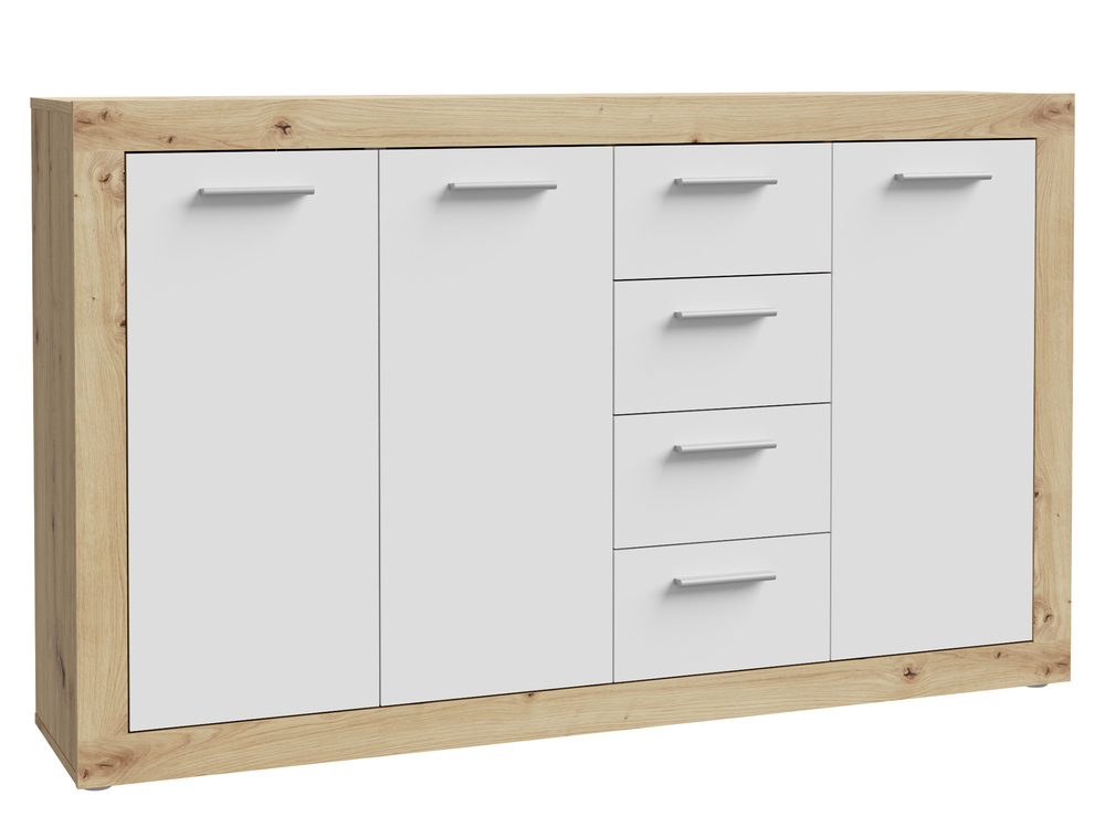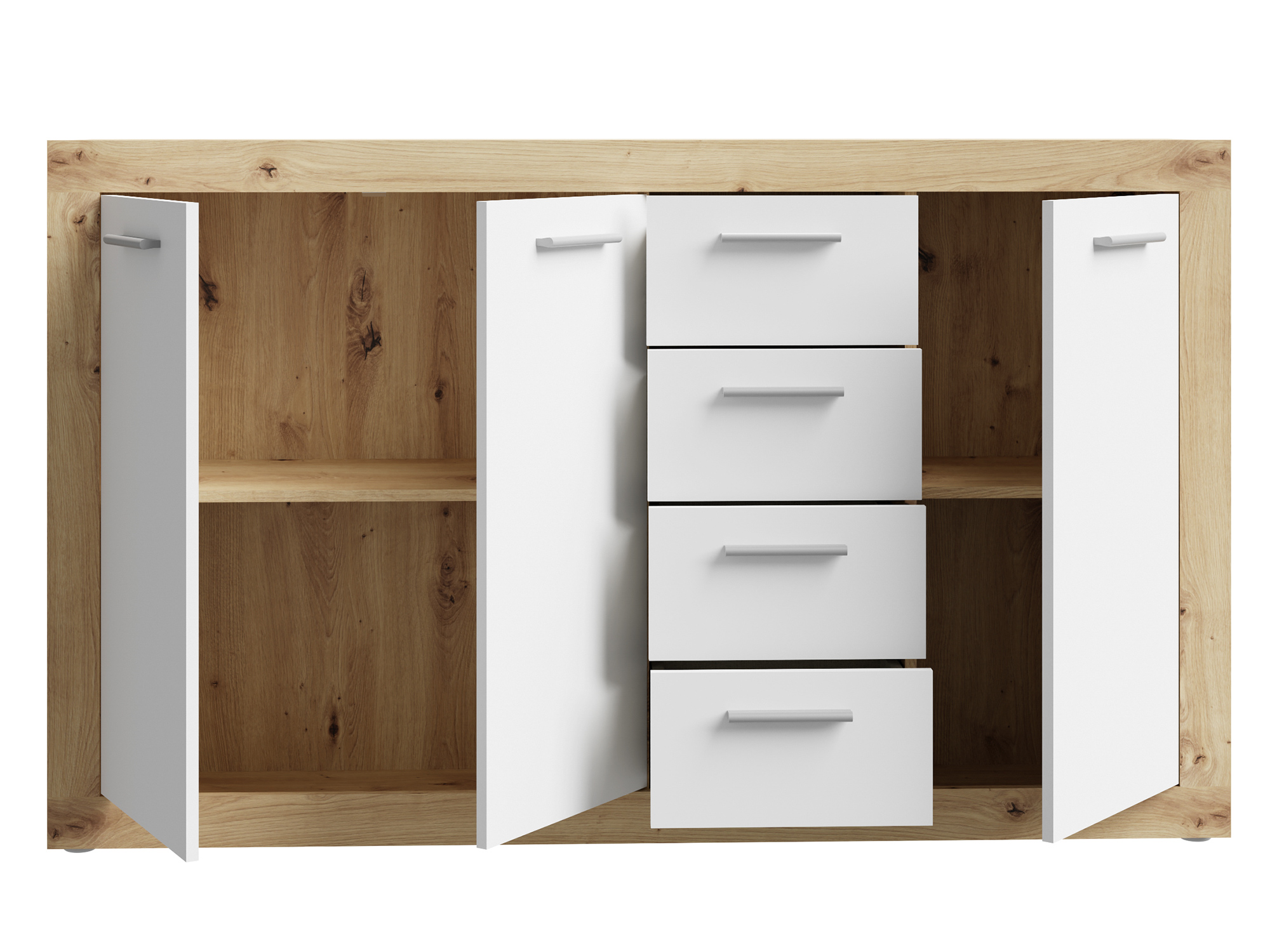 Bahut 3 portes 4 tiroirs Baccio chene artisan / blanc mat