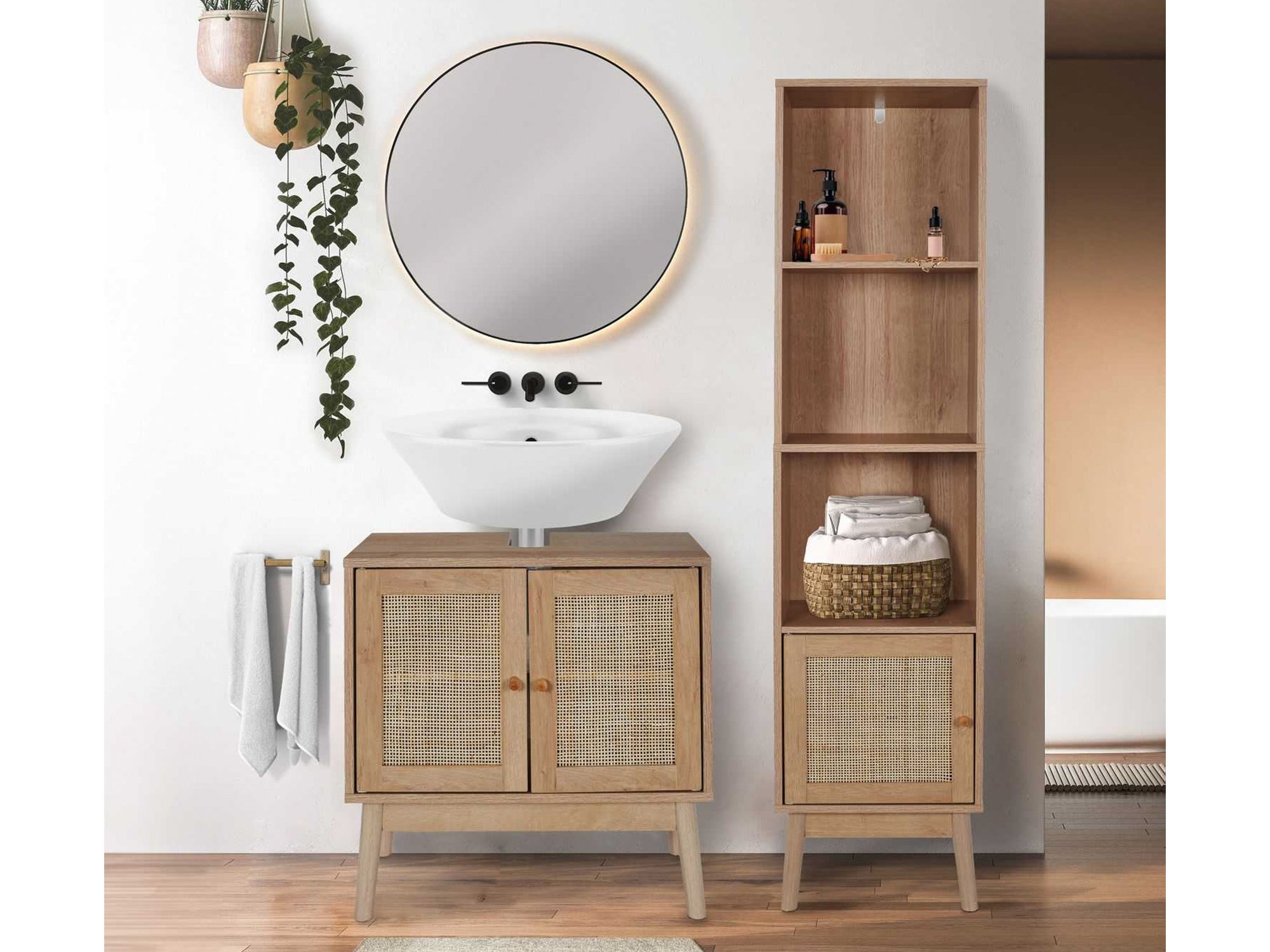 Apportez une touche d'élégance fonctionnelle avec notre colonne de rangement. Alliant le charme du bois à la finesse d'une porte en rotin, cette colonne est une solution de rangement verticale idéale pour maximiser l'espace tout en ajoutant un accent décoratif. Elle offre des étagères ouvertes pour vos articles fréquemment utilisés et un compartiment fermé pour les objets que vous préférez garder hors de vue. Sa silhouette élancée et ses détails soignés en font un ajout raffiné, alliant sans effort le style et la commodité pour une organisation impeccable et un design intérieur harmonieux.