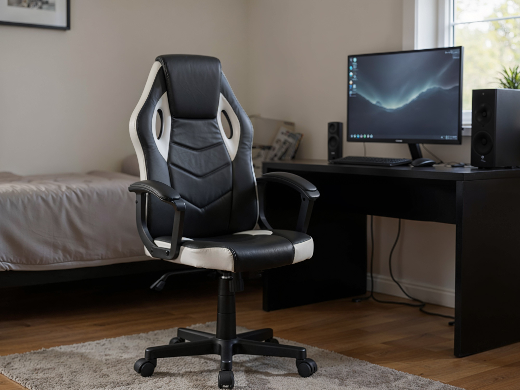 Fauteuil de bureau avec accoudoir réglable en hauteur de 103 à 113 cm.