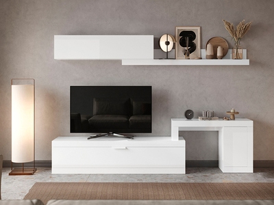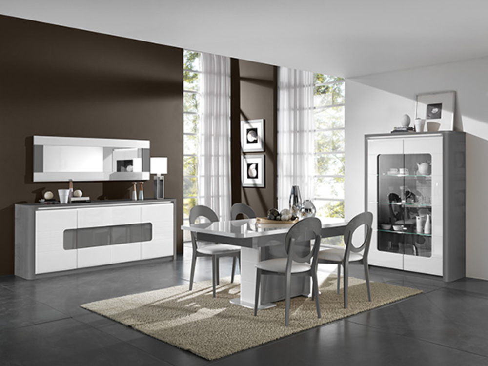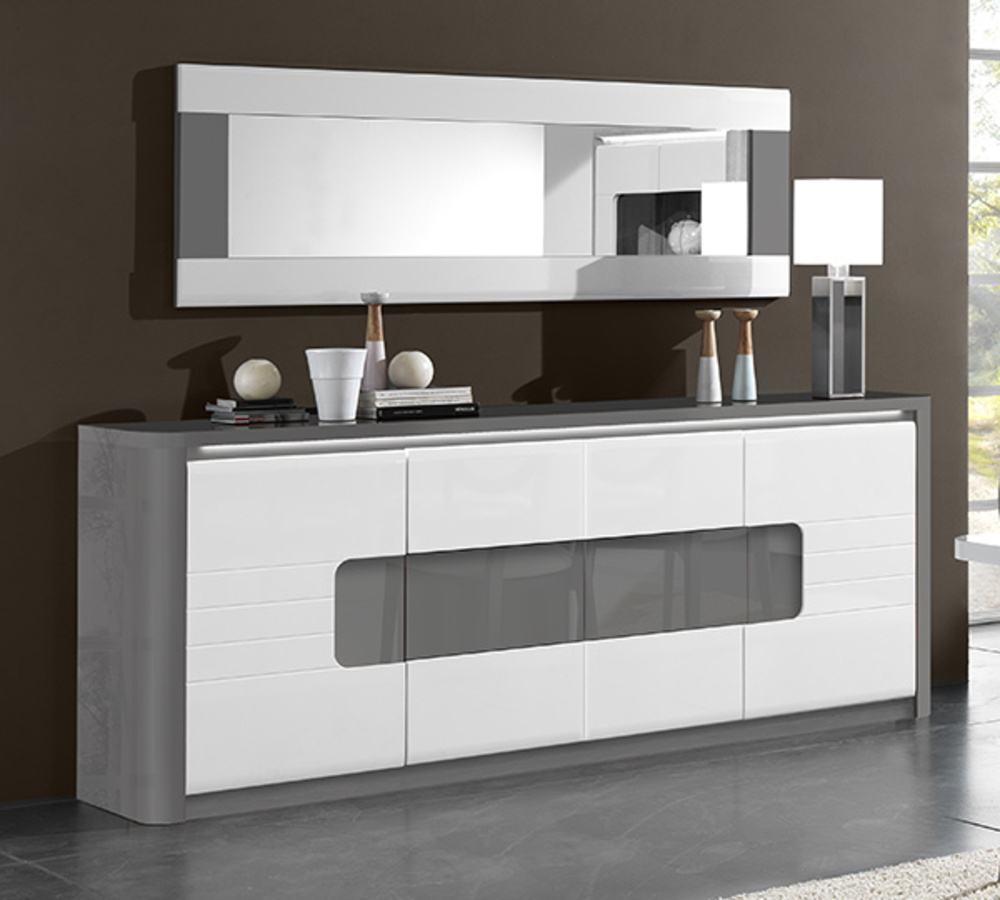 Bahut 4 portes 1 tiroir Bellini laqué blanc/gris brillant