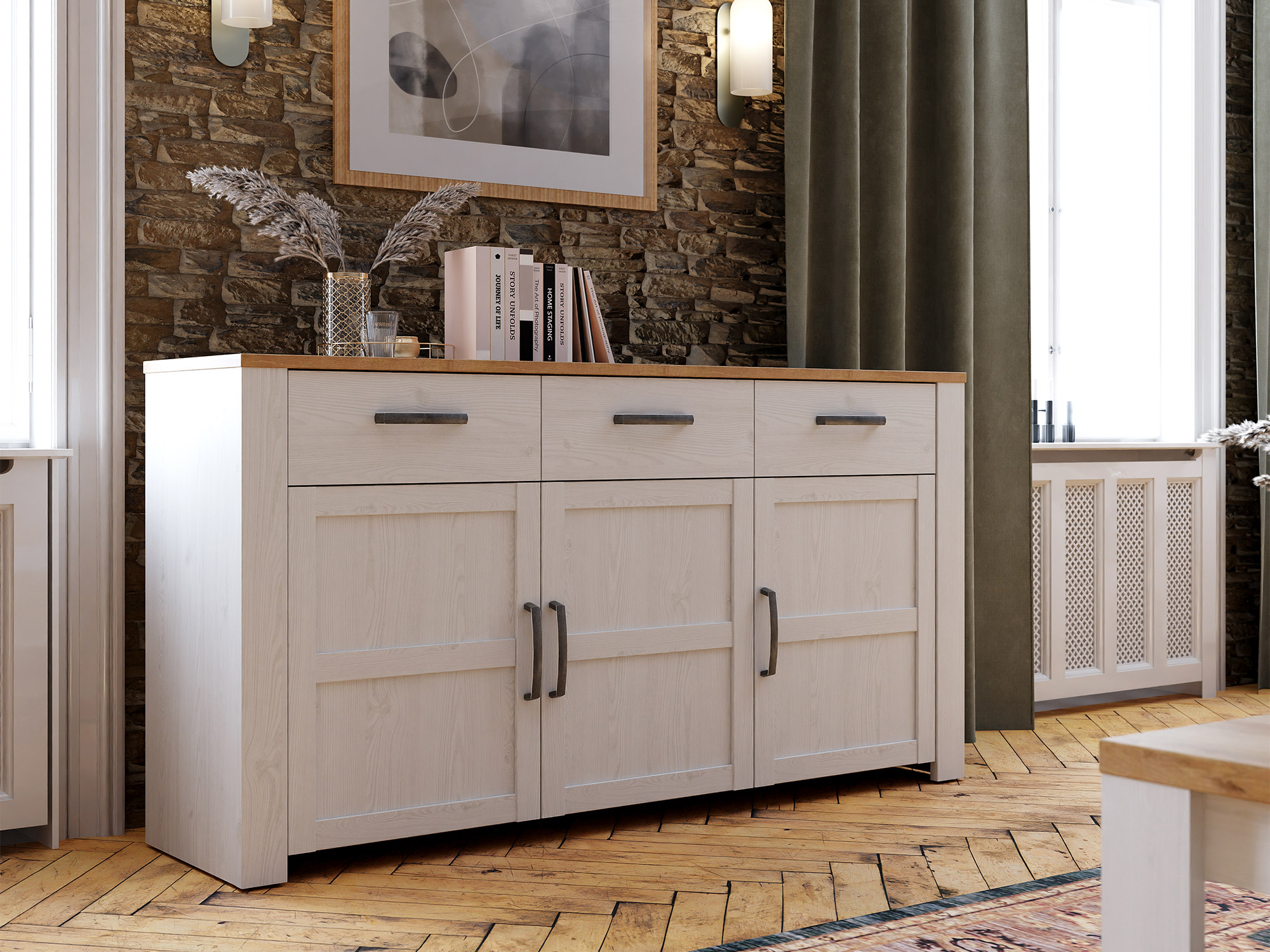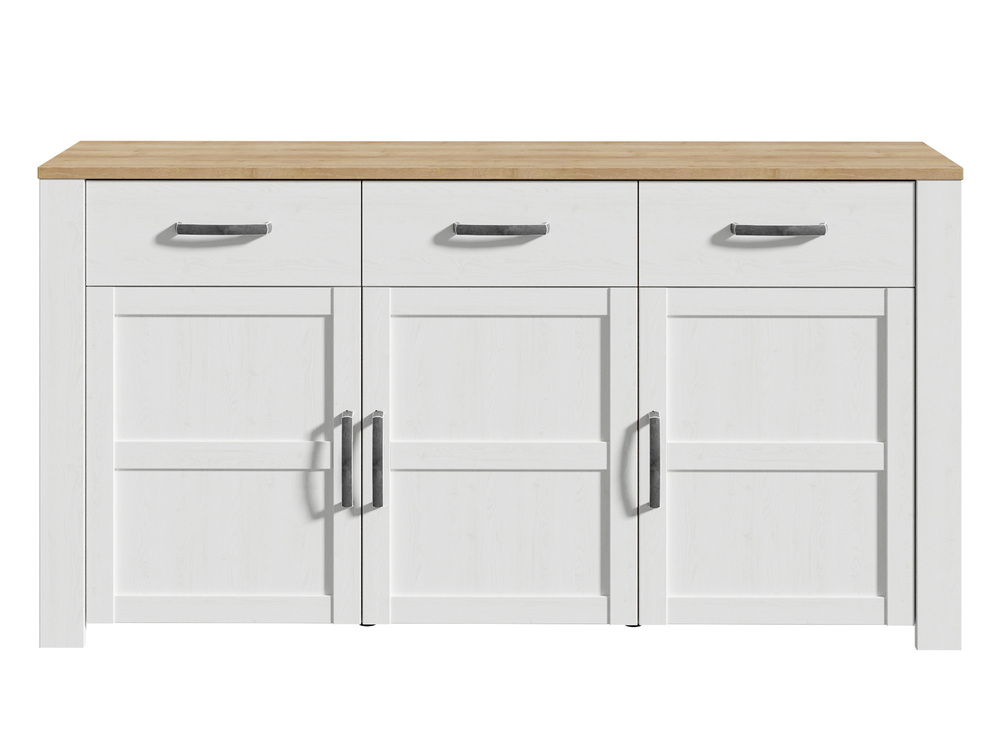 Bahut 3 portes 3 tiroirs Bohol chene blanc/chene