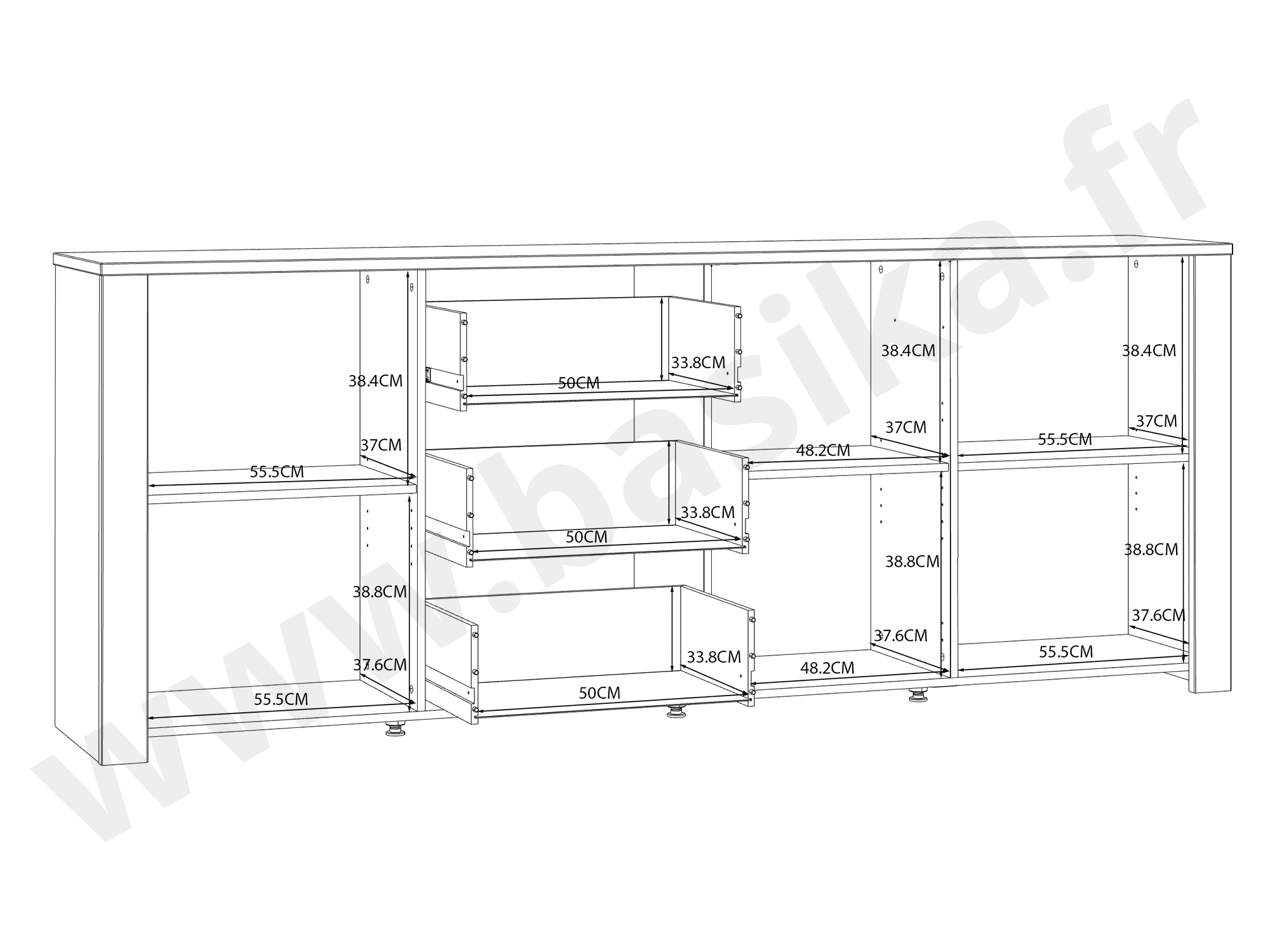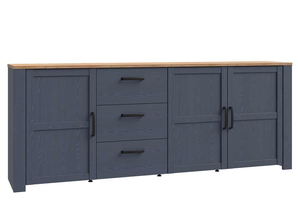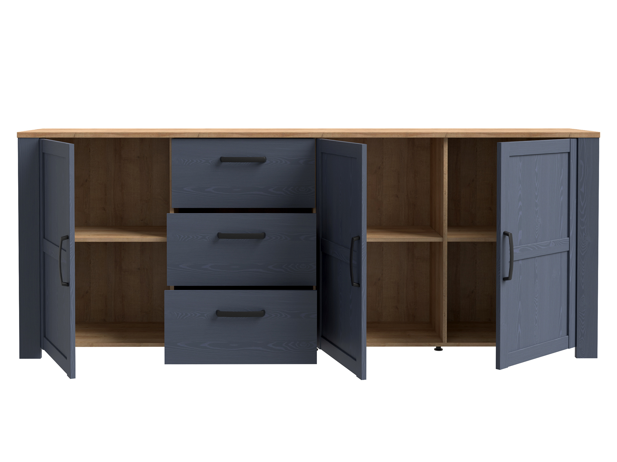 Bahut 3 portes 3 tiroirs gm Bohol chene marine/chene