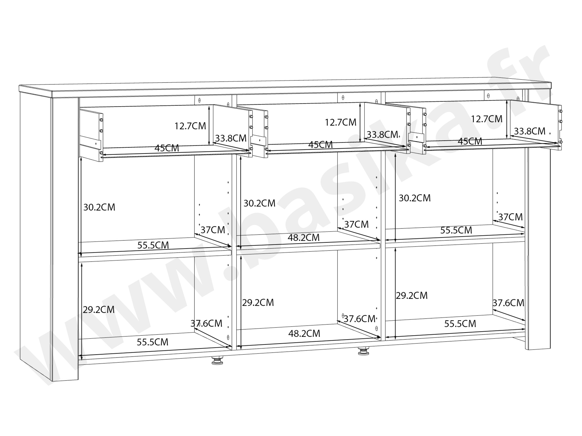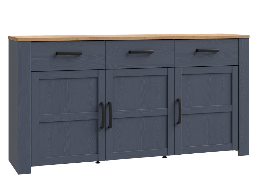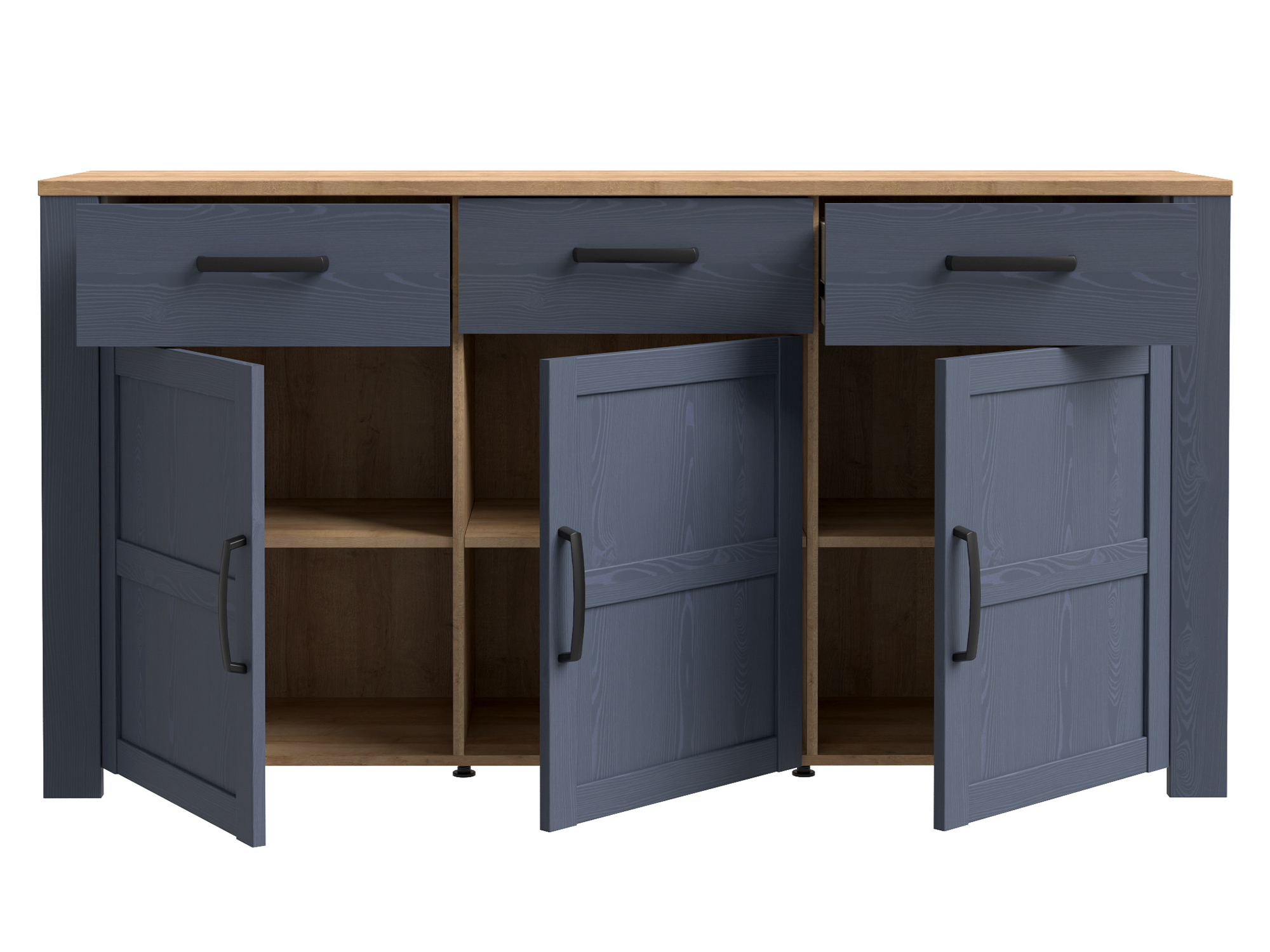 Bahut 3 portes 3 tiroirs Bohol chene marine/chene