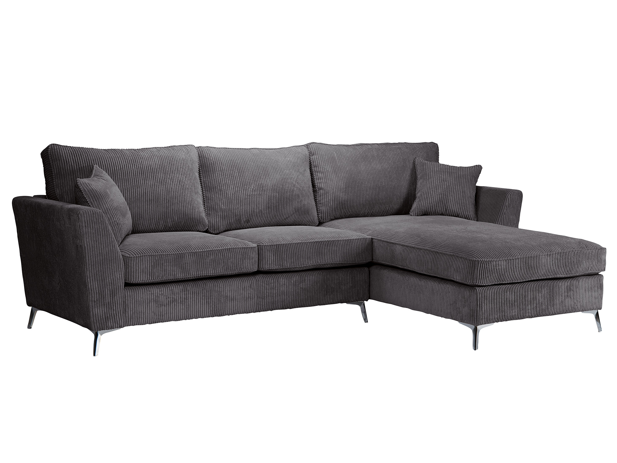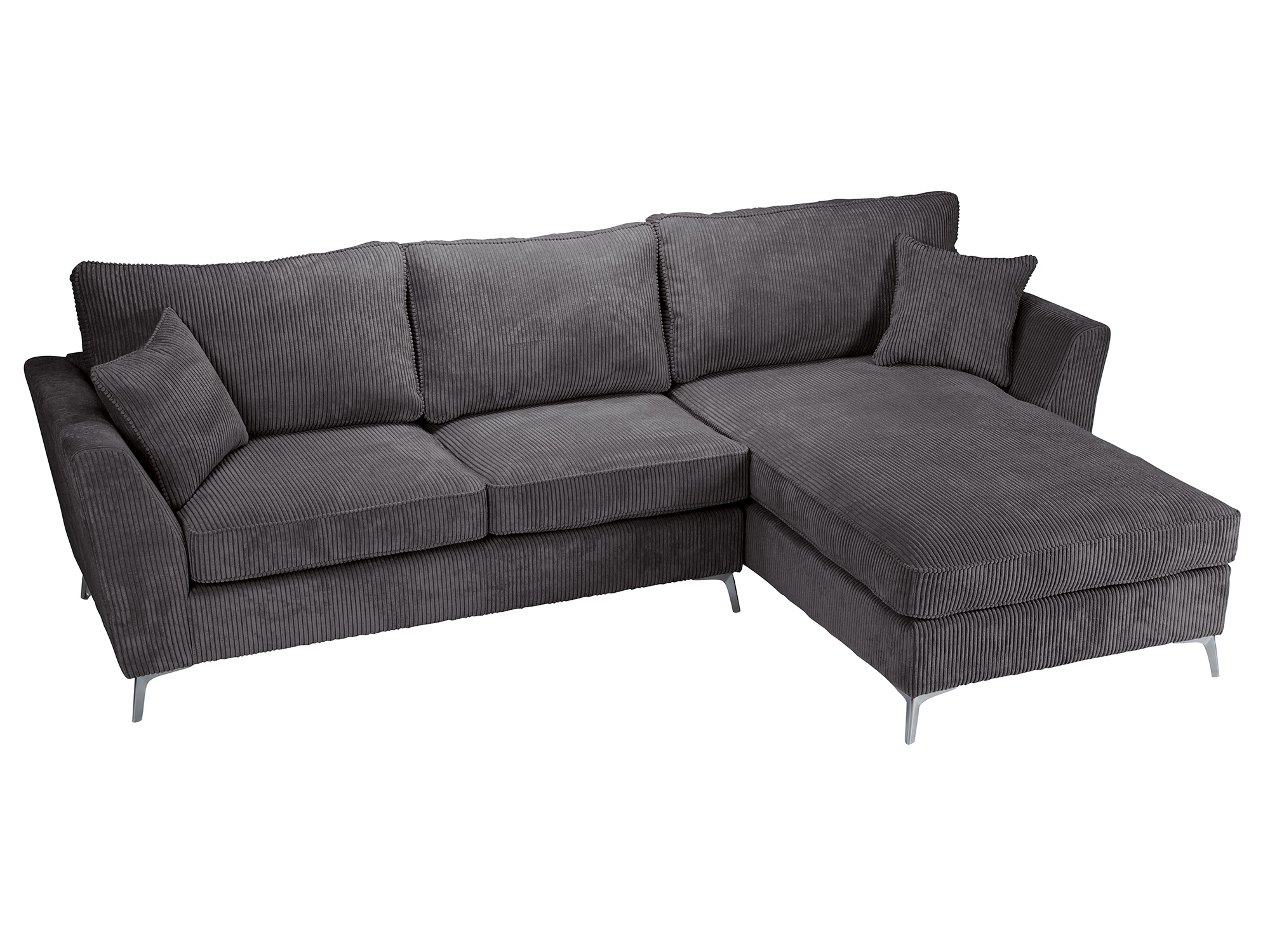 Structure en bois massif (pin) et panneaux de particules. Assise ame en mousse de polyuréthane 30kg/m3 (12 cm) + ouate 400gr/m2. Suspension par ressorts zig zag, Dossier: sangles élastiques, coussins déhoussables garnis de fibres de silicone. Pieds métal chromés hauteur 13 cm. Revetement: 100% polyesther 380g/m2.