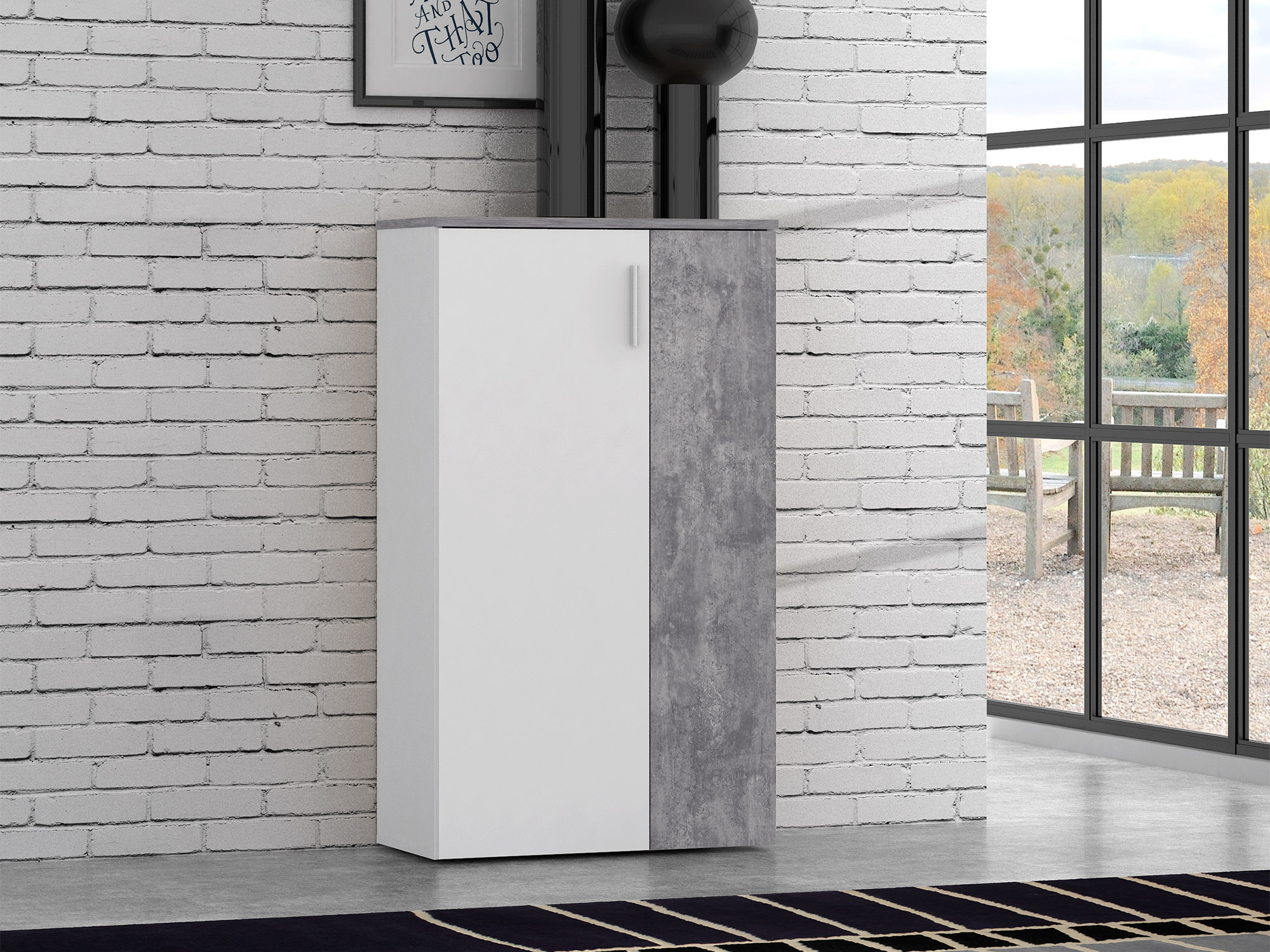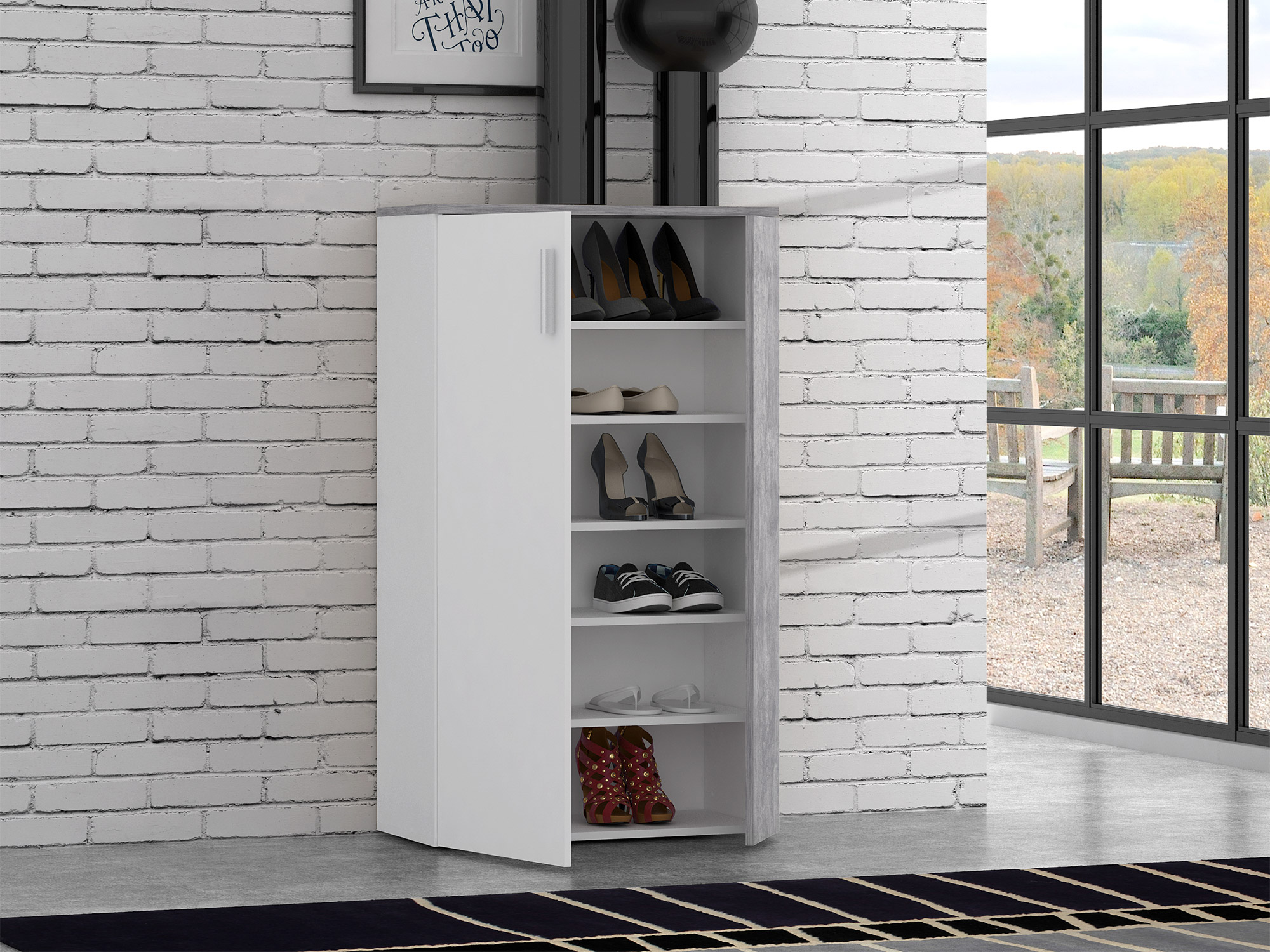 Meuble à chaussure 2 portes, aménagée avec 5 étagères. Capacité 18 paires.