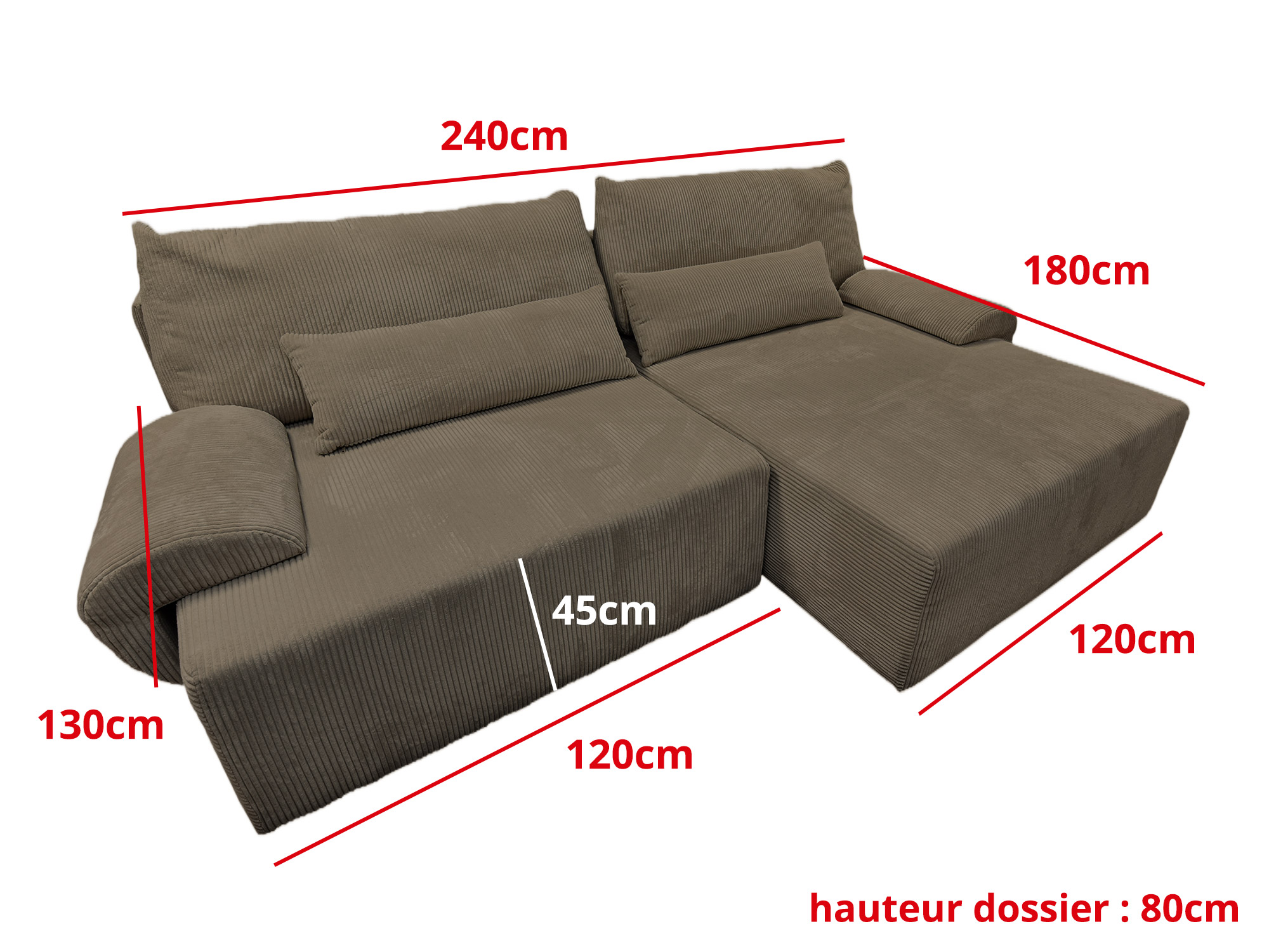 Salon d'angle convertible et réversible avec coffre de rangement.