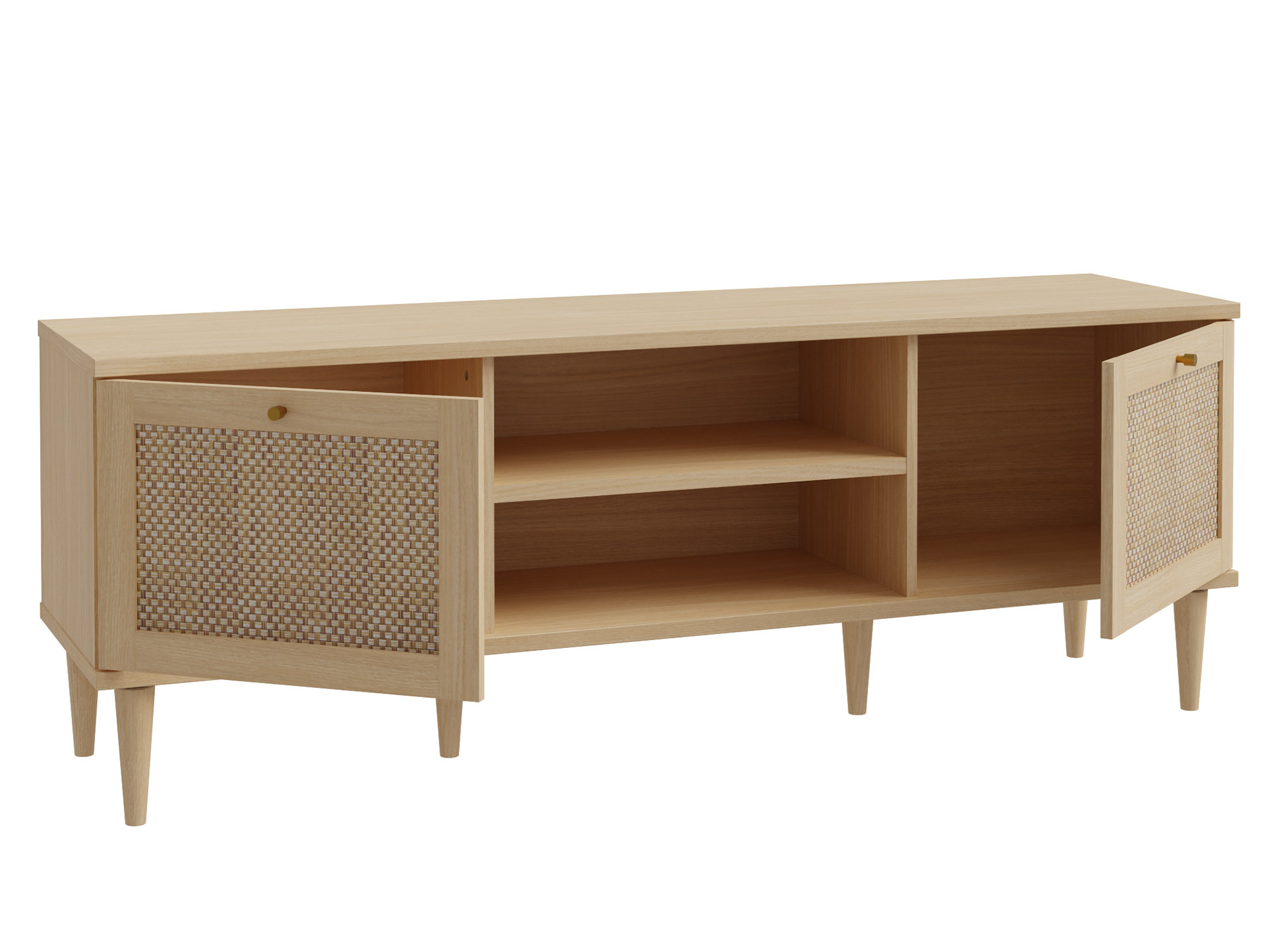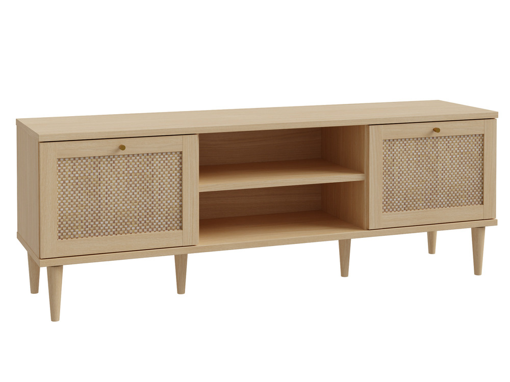 Meuble TV 2 portes en polyrotin avec fermeture en douceur.
