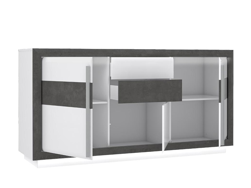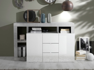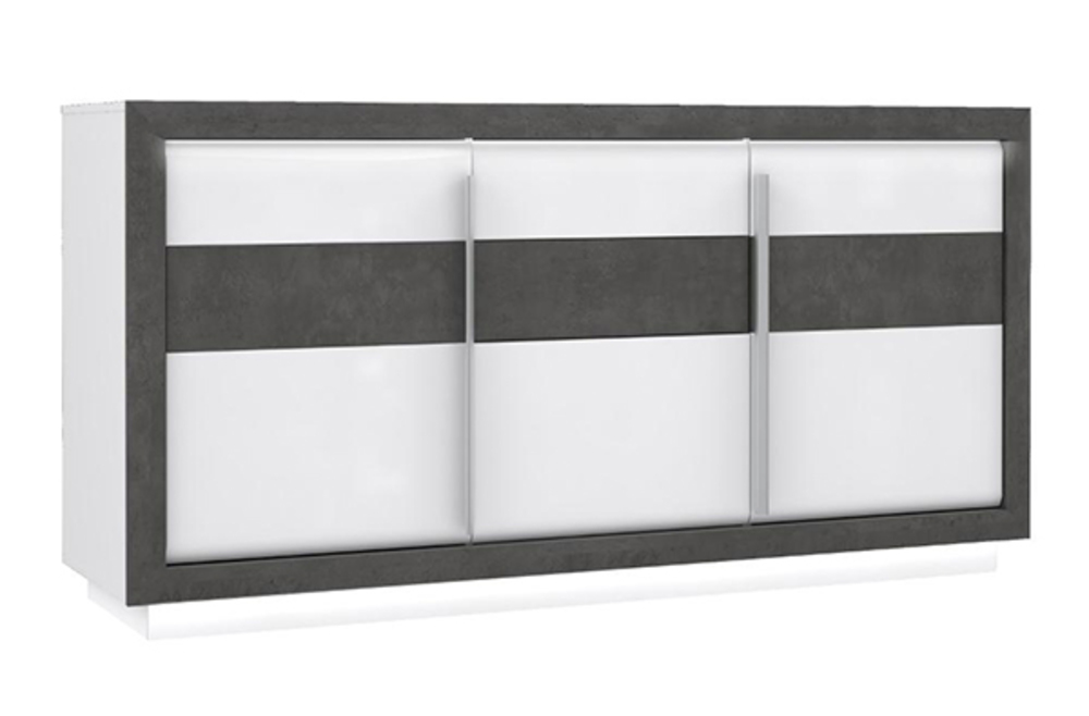 Bahut 3 portes 2 tiroirs Cannes blanc/béton