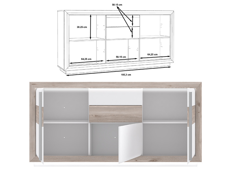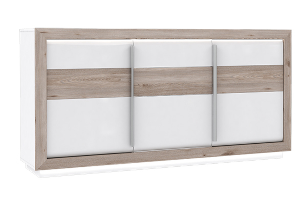 Bahut 3 portes 2 tiroirs Cannes chene nelson/blanc brillant