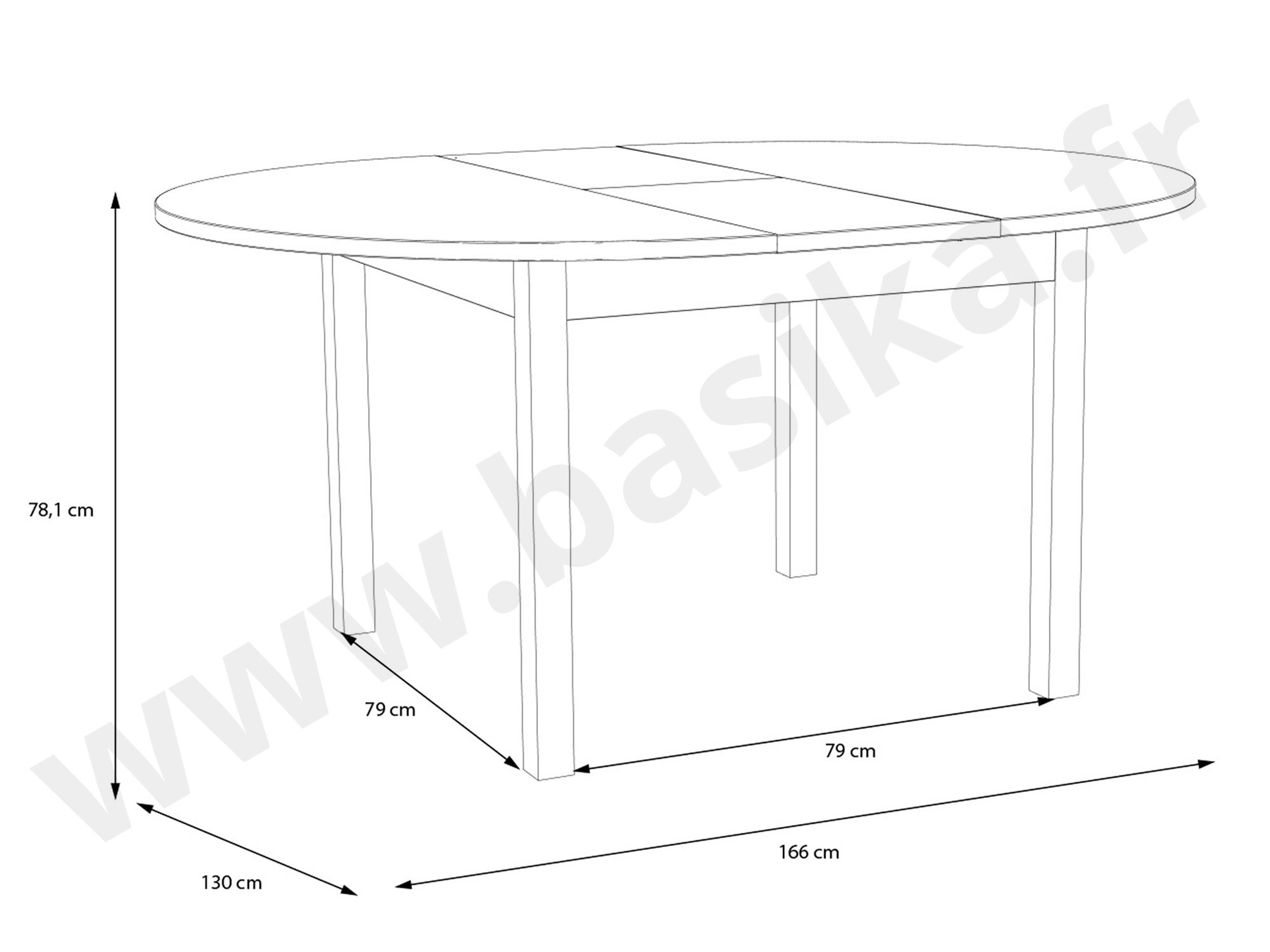 Table de repas ronde extensible de 130 à 166 cm.