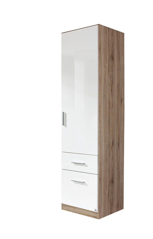 Armoire 1 porte+2 tiroirs droite Celle chene sonoma/blanc brillant