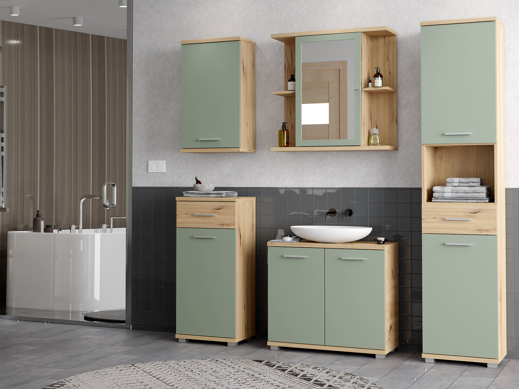 Meuble sous lavabo Champ chene artisan/vert sauge