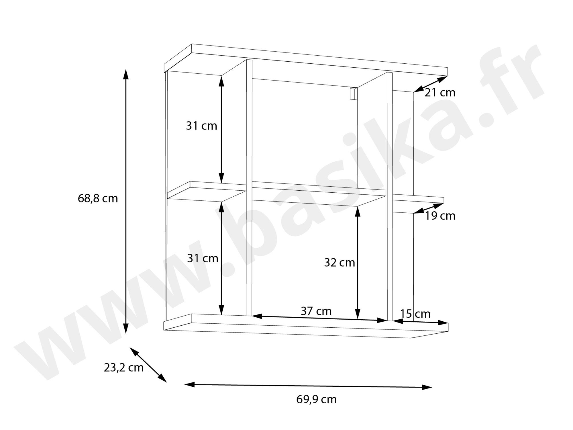 Meuble haut 1 porte avec miroir Champ gris foncé/blanc brillant