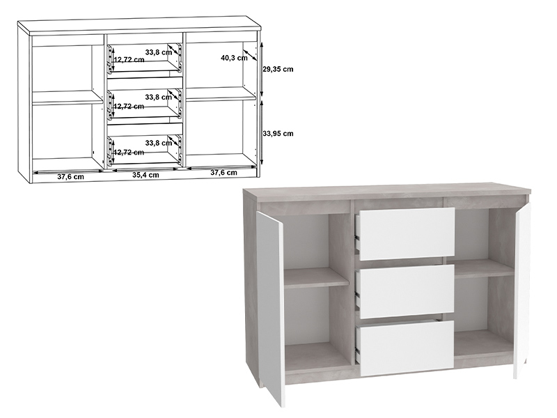 Bahut 2 portes 3 tiroirs Chelsea béton/blanc