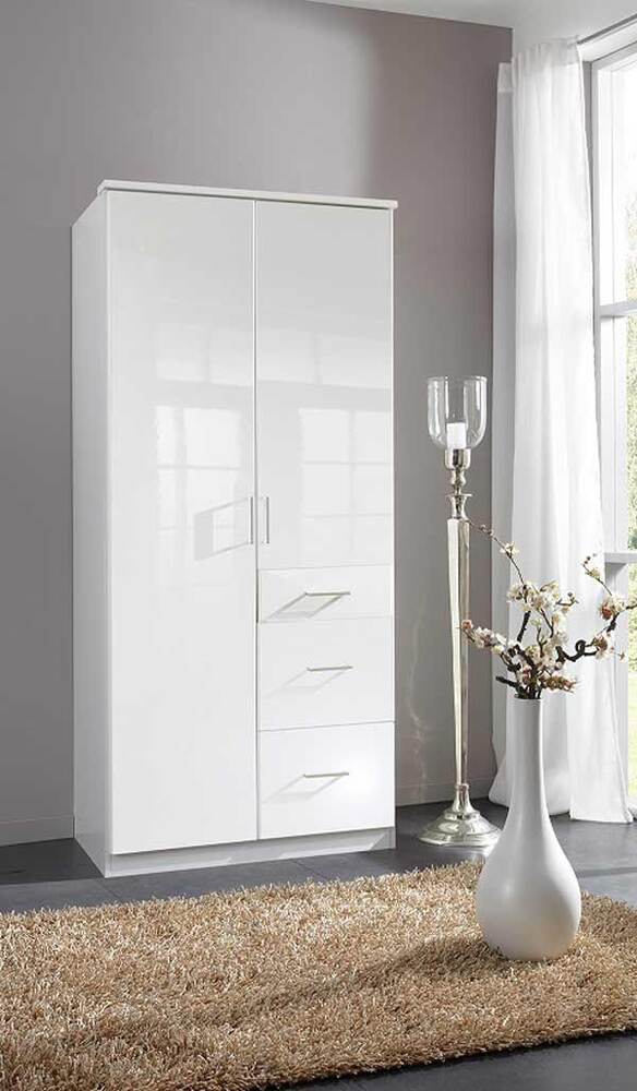 Armoire 2 portes 3 tiroirs Clack blanc portes pleines