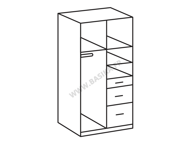 Armoire 2 portes 3 tiroirs