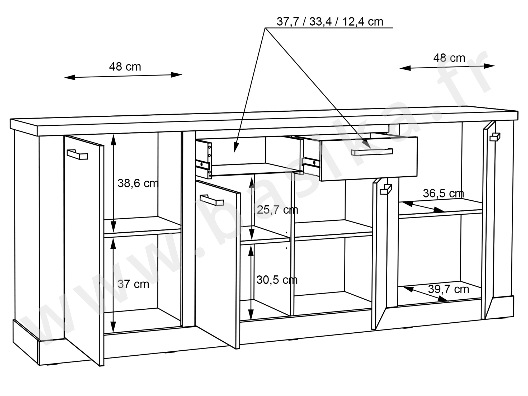 Epaisseur panneaux 15 mm. Top en 38 mm.