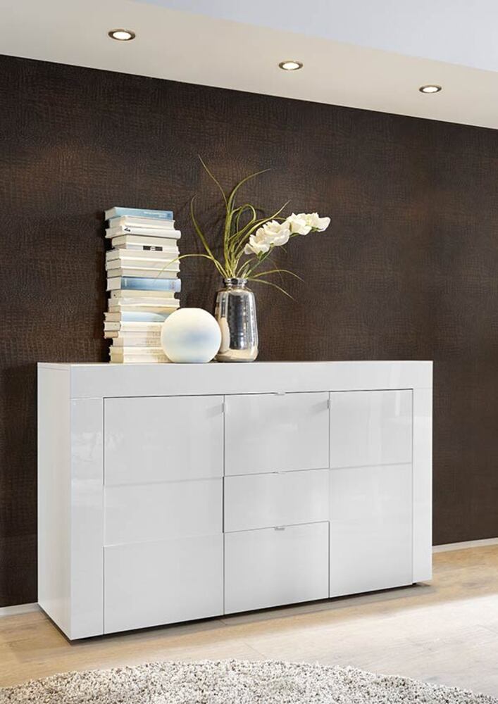 Bahut 2 portes 3 tiroirs Cortina blanc brillant