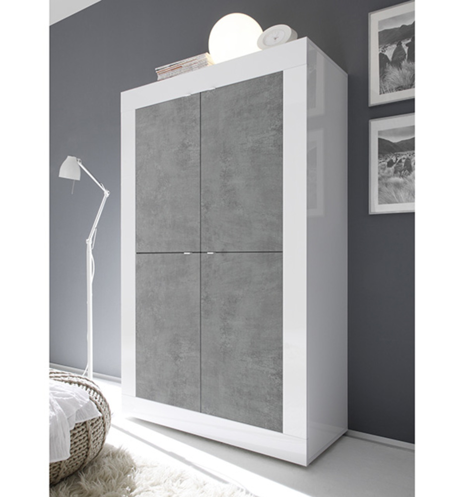 Rangement 4 portes Costa blanc brillant/béton