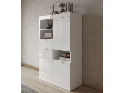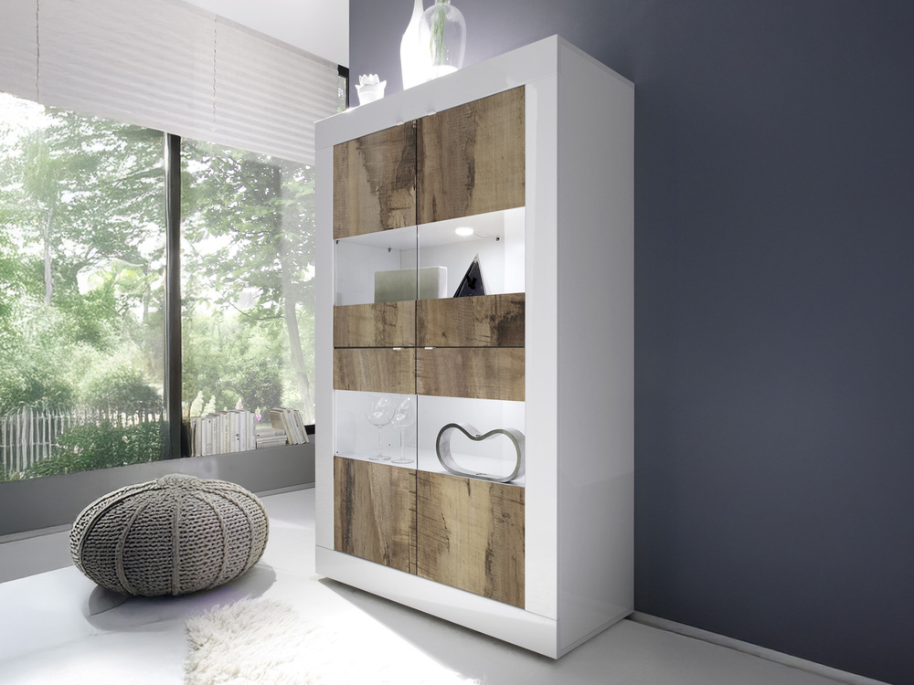 Vitrine 4 portes vitréés Costa blanc brillant/poirier