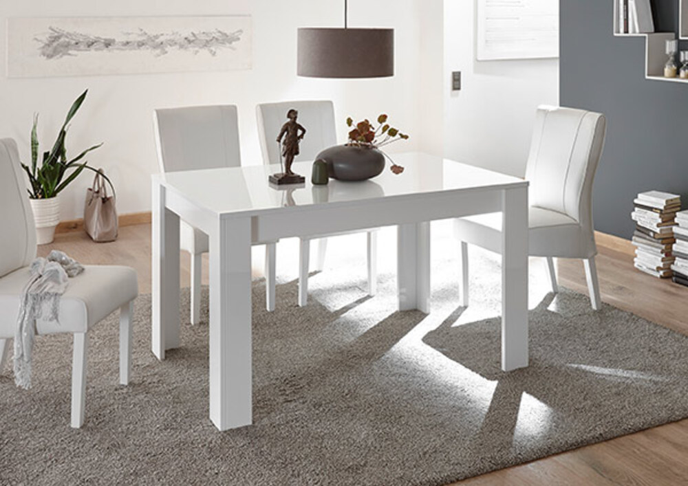 Avec une largeur de 180cm, cette table de repas Basic / Costa blanc brillant vous permettra de passer de savoureux moments de partage dans un cadre lumineux et design. Ce modèle existe aussi en 160cm sur notre site internet.