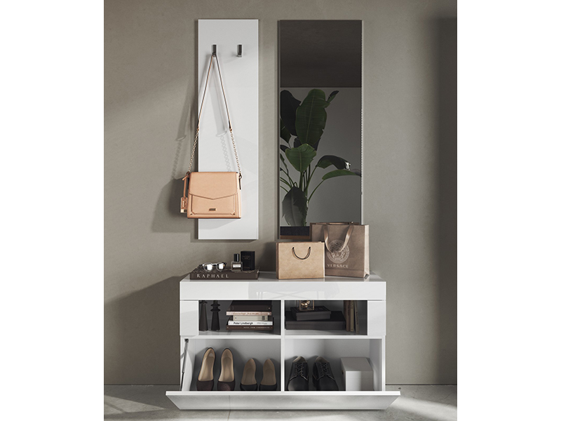 Vestiaire Costa meuble entrée laqué blanc brillant