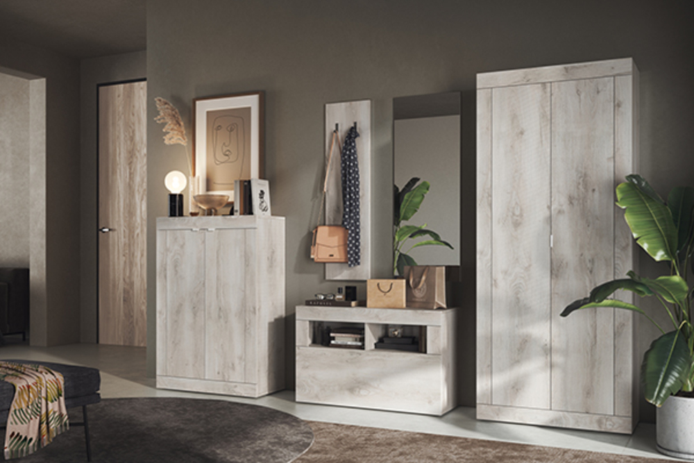 Armoire 2 portes Costa meuble entrée pin blanchi