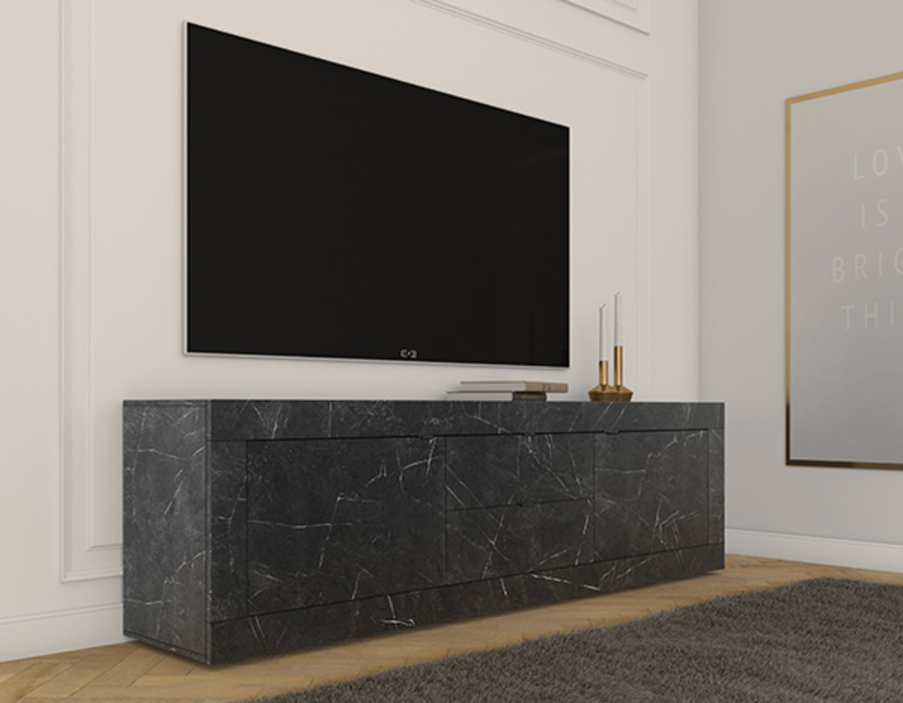Meuble tv 2 portes 2 tiroirs Costa noir marbré
