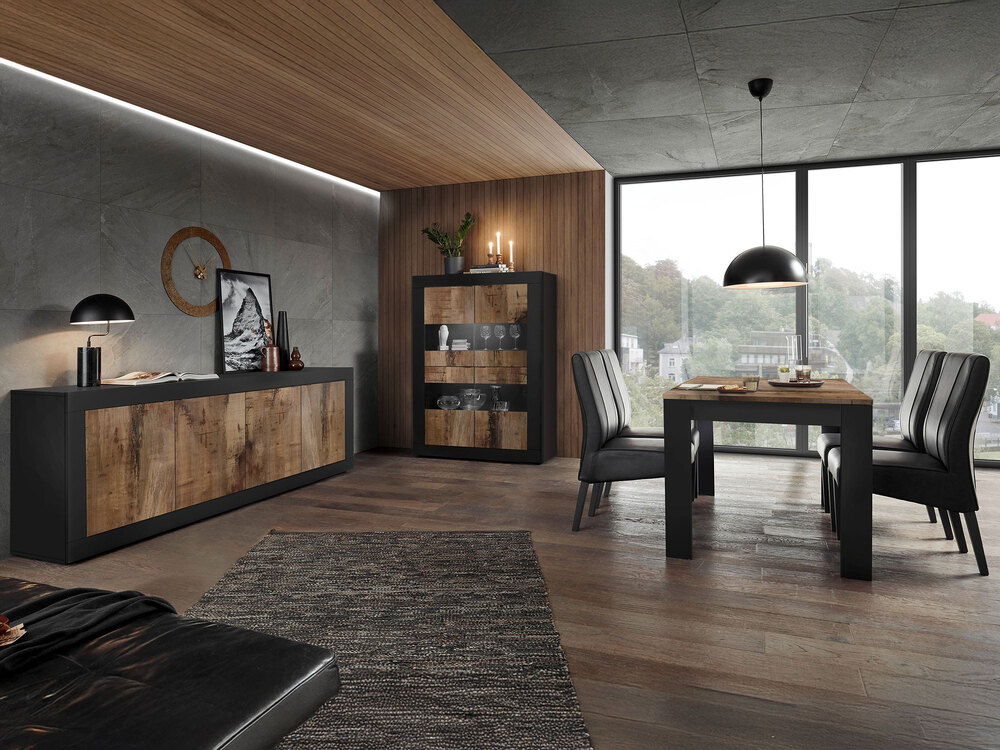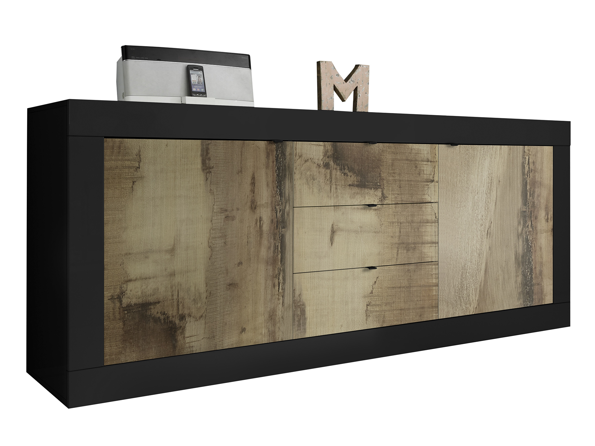 Apportez une touche de raffinement industriel à votre intérieur avec le bahut Costa, 2 portes et 3 tiroirs. Son design robuste et moderne se démarque par un cadre noir intense qui met en valeur les façades en bois effet vieilli, pour un look brut et authentique.