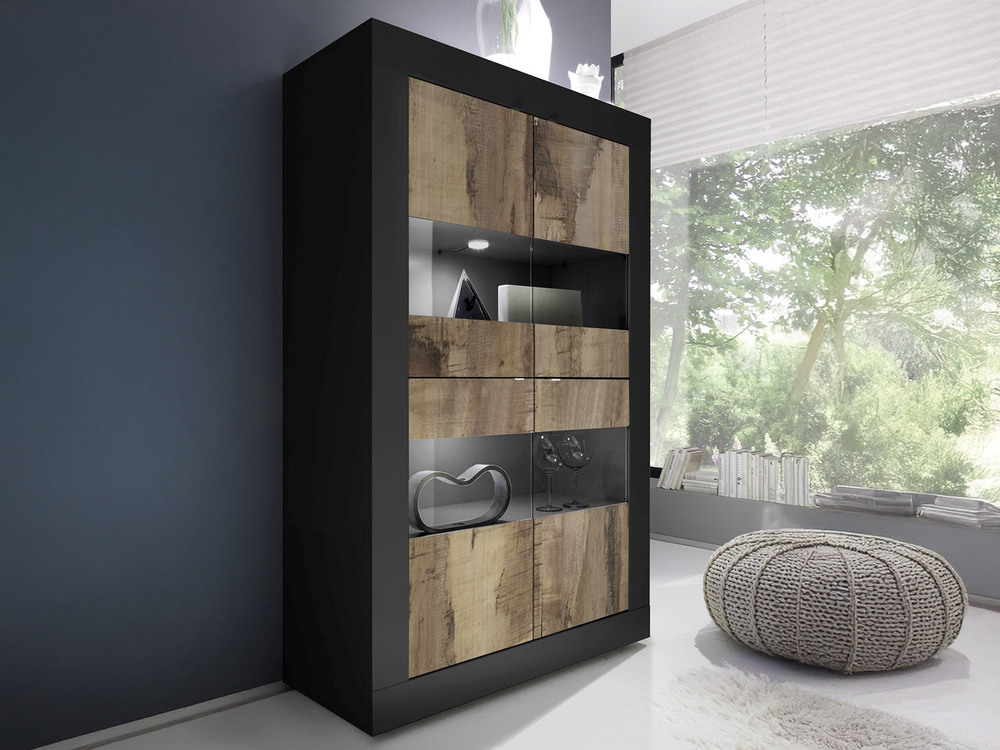 Vitrine 4 portes vitrées.Aménagement intérieur: 3 étagères en panneaux de fibre de moyenne densité.
