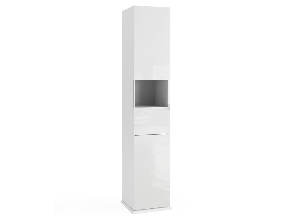 Colonne pivotante avec miroir, 1 tiroir et 2 portes.
