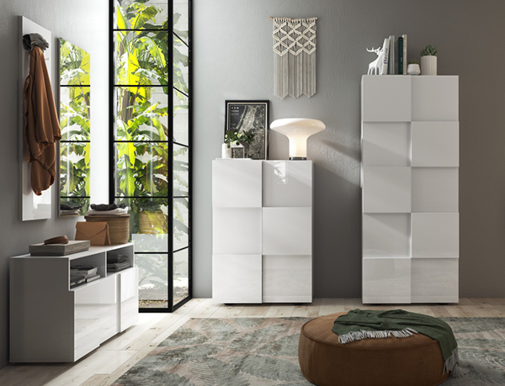 Meuble 2 portes Damier meuble d'entrée laqué blanc