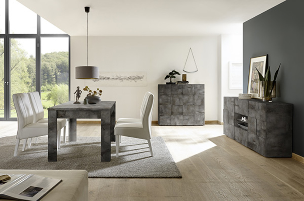 Bahut 2 portes 4 tiroirs Damier oxyde noir