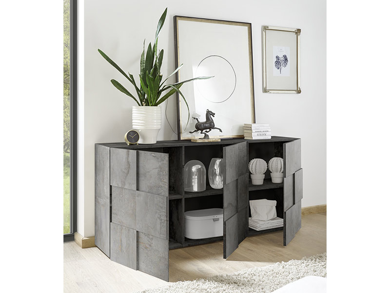 Bahut 3 portes Damier oxyde noir