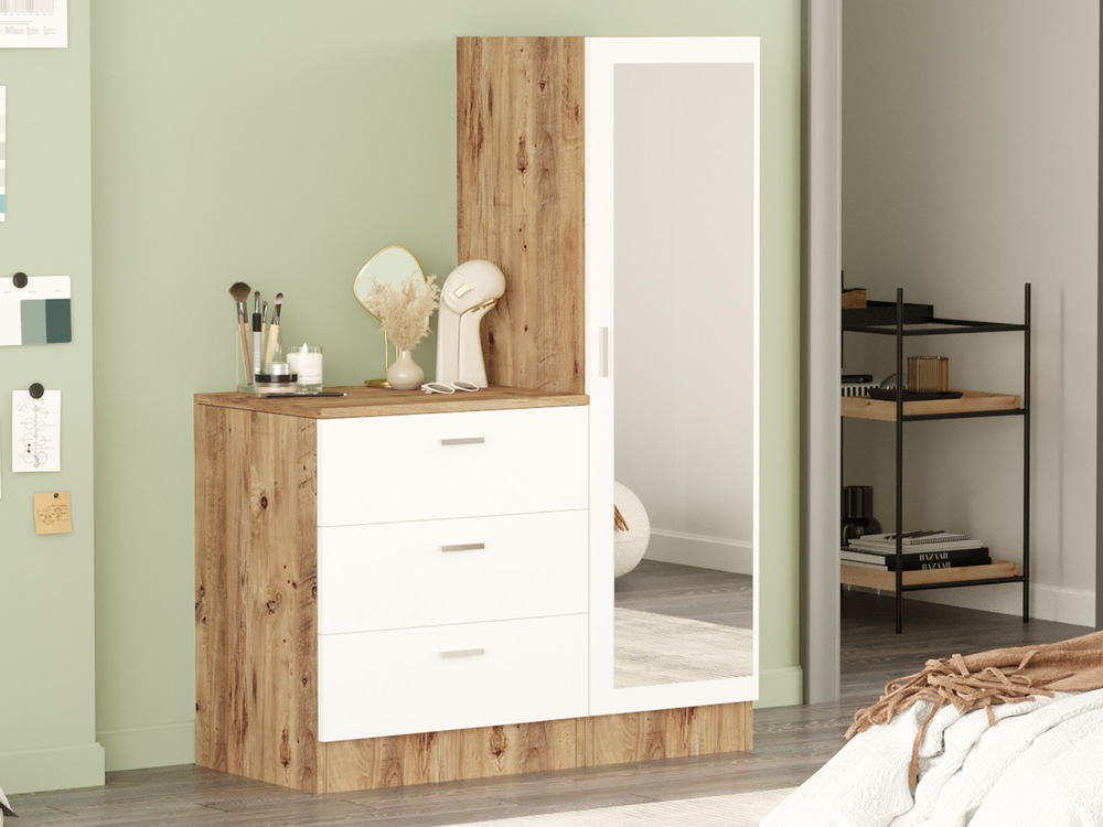 Armoire 1 porte avec miroir + commode 3 trioirs.
