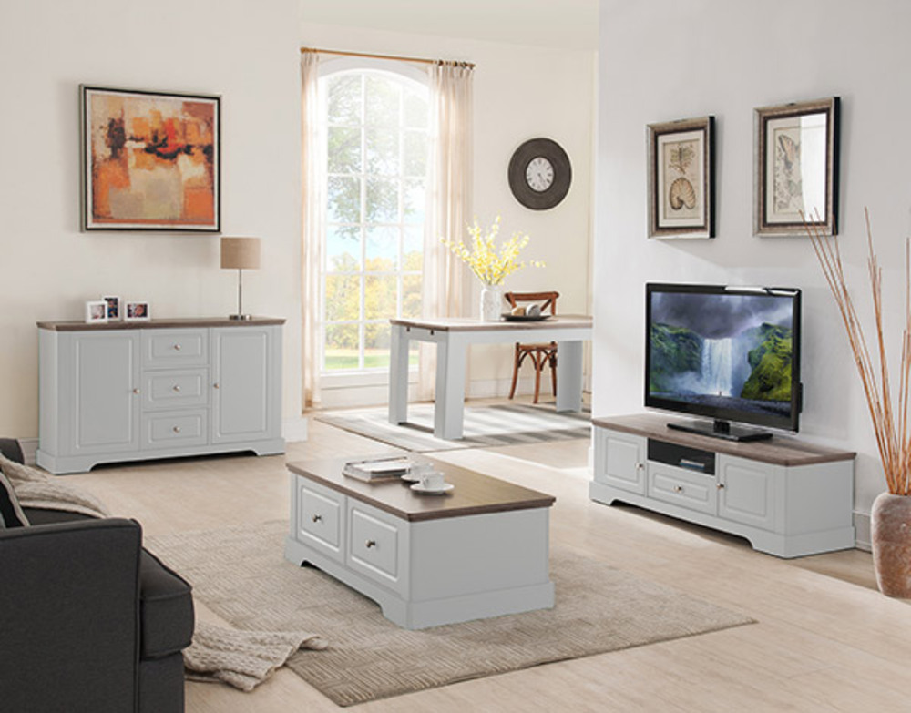 Bahut 2 portes 3 tiroirs Dessy blanc/chene
