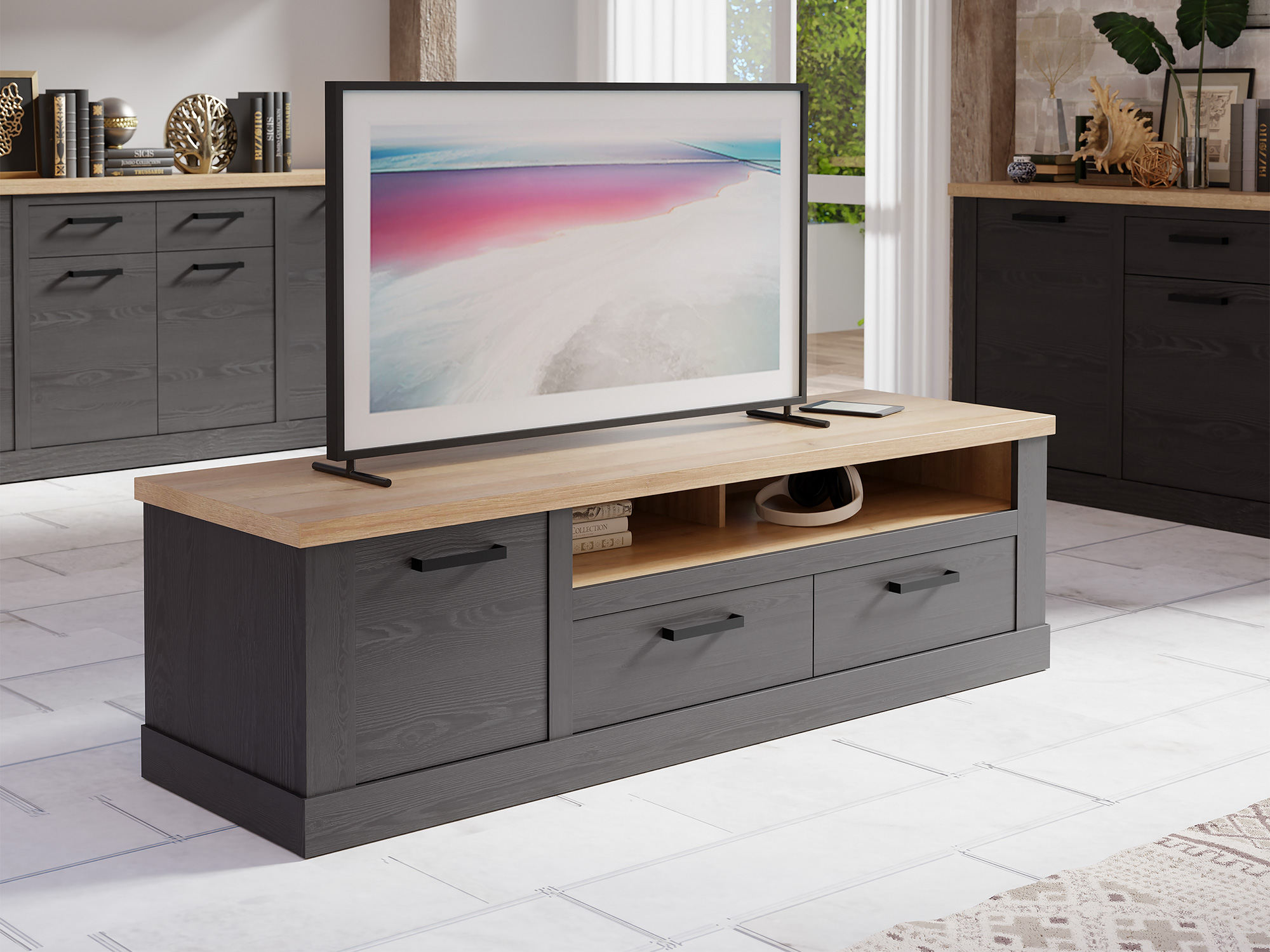 Meuble tv gm Duro salle à manger chene riviera/chene noir