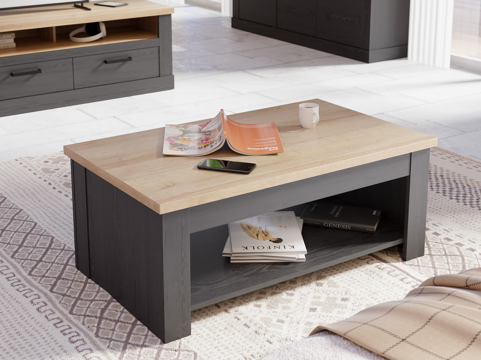 Table basse relevable Duro salle à manger chene riviera/chene noir