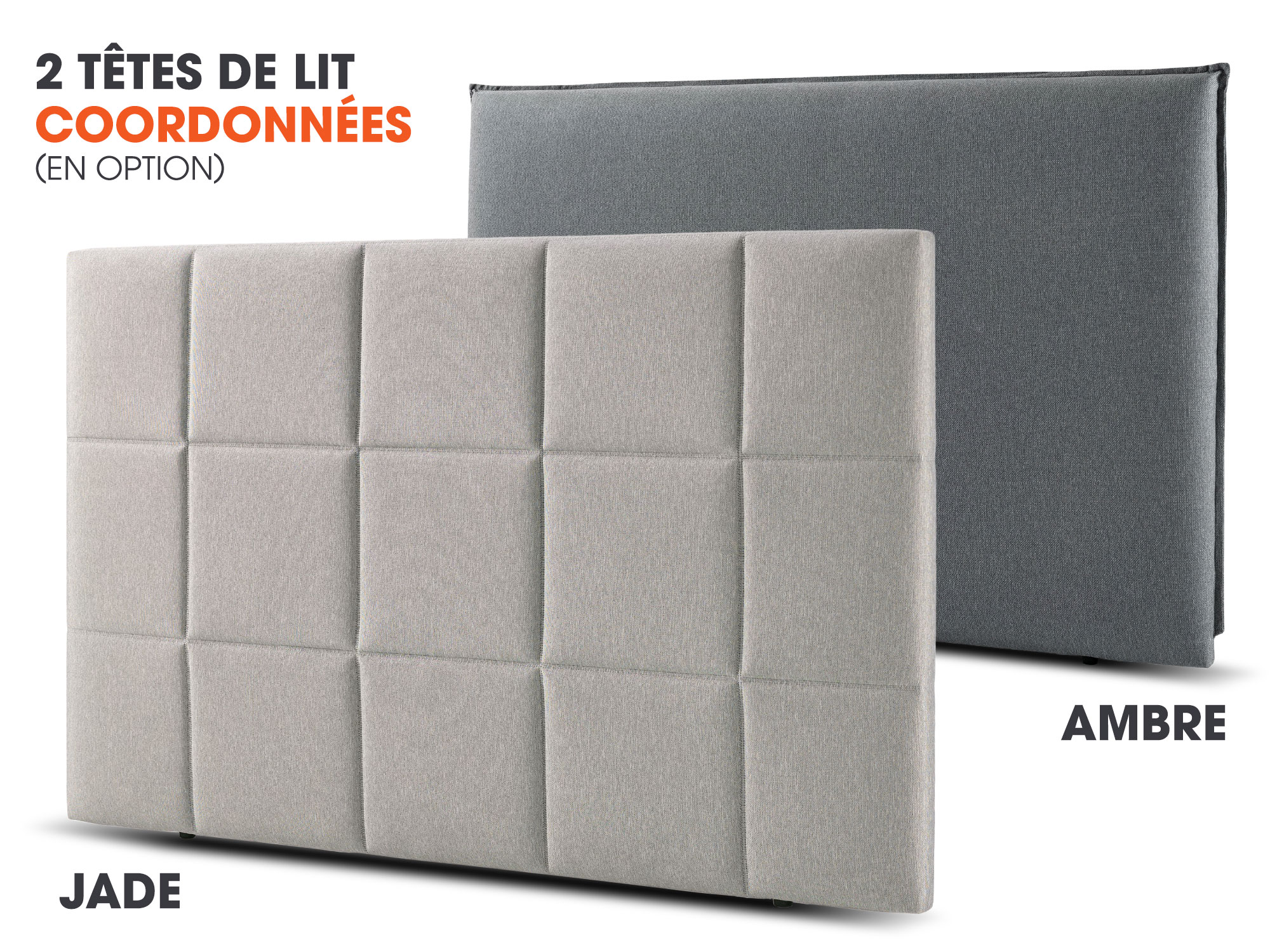 Ce modèle est coordonné avec les têtes de lit Ambre ou Jade dans le même tissu
