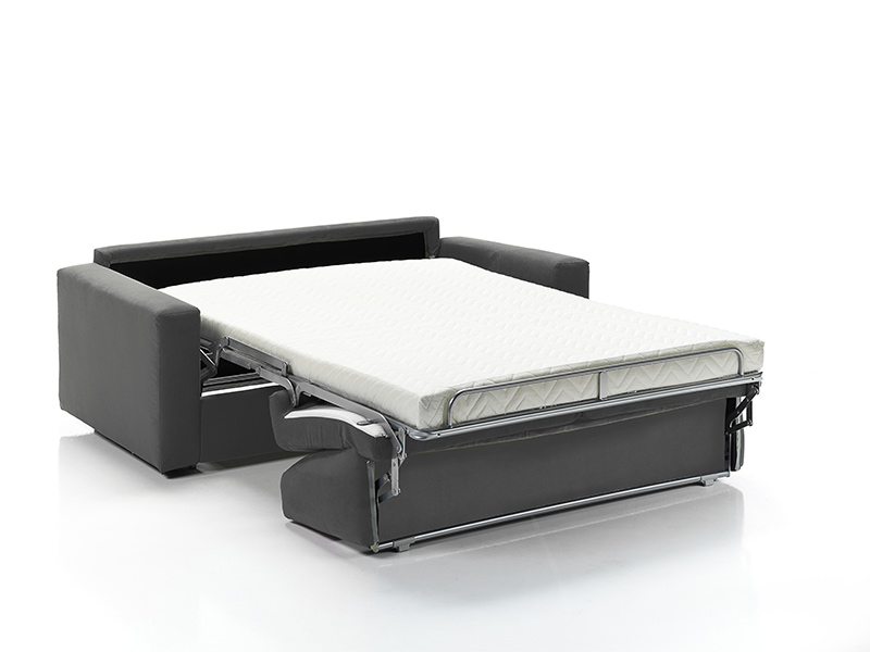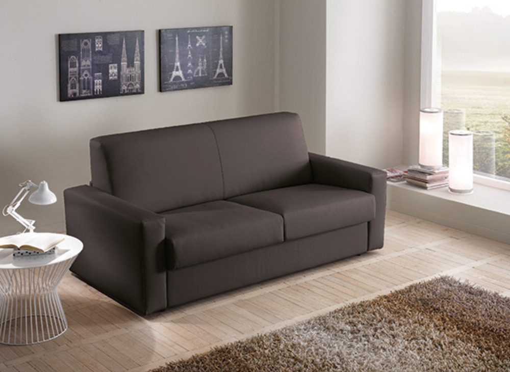 Canapé lit. Dimension couchage: 140 x 190 cm. Matelas hauteur 12 cm. Porte coussins à l'intérieur du dossier.
