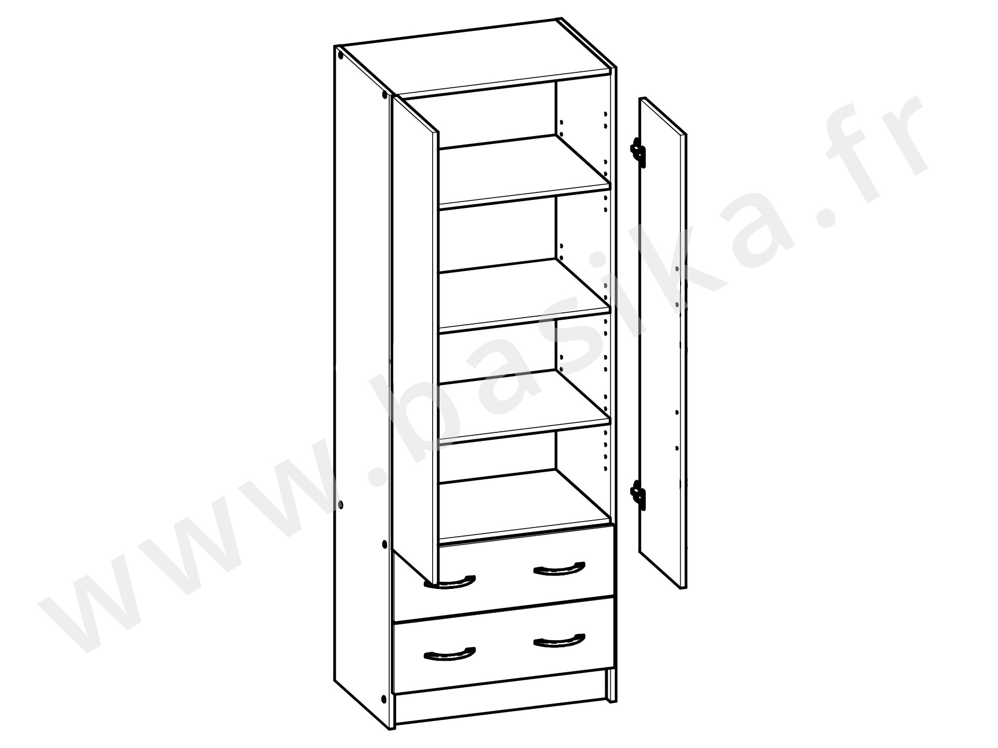 Meuble en panneaux de particules, épaisseur 15mm. Revetu de papier décor.A assembler.