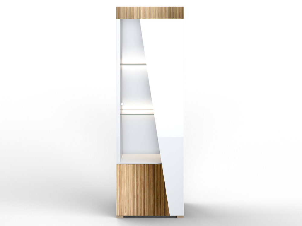 Vitrine 1 porte droite Etna blanc brillant/bois