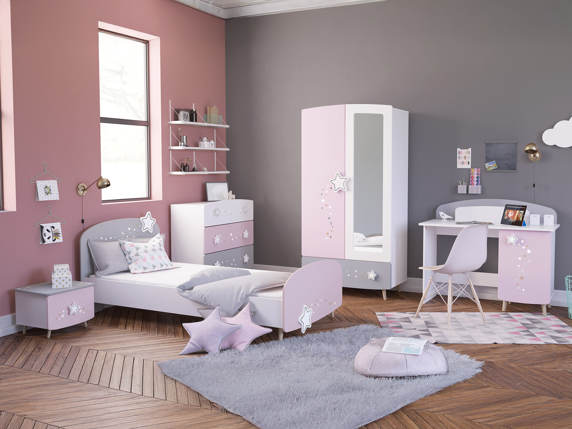 Panneaux de particules décors papier imitation Blanc mat/gris clair/rose.