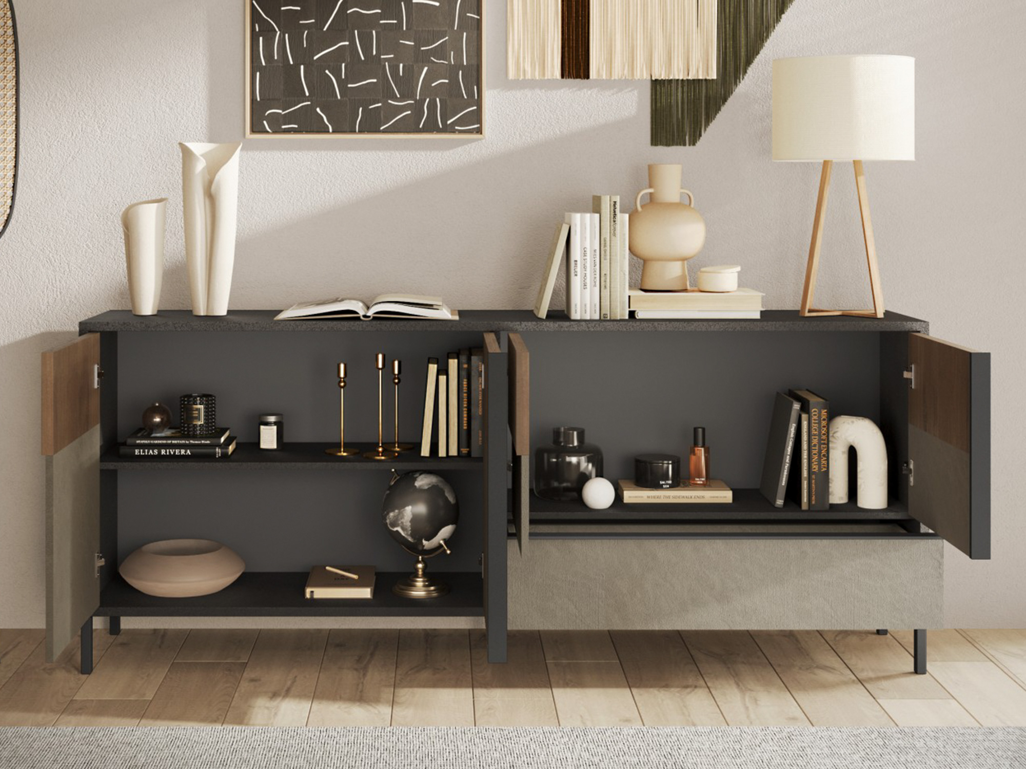 Bahut 4 portes 1 tiroir Everest lave,argile et chene